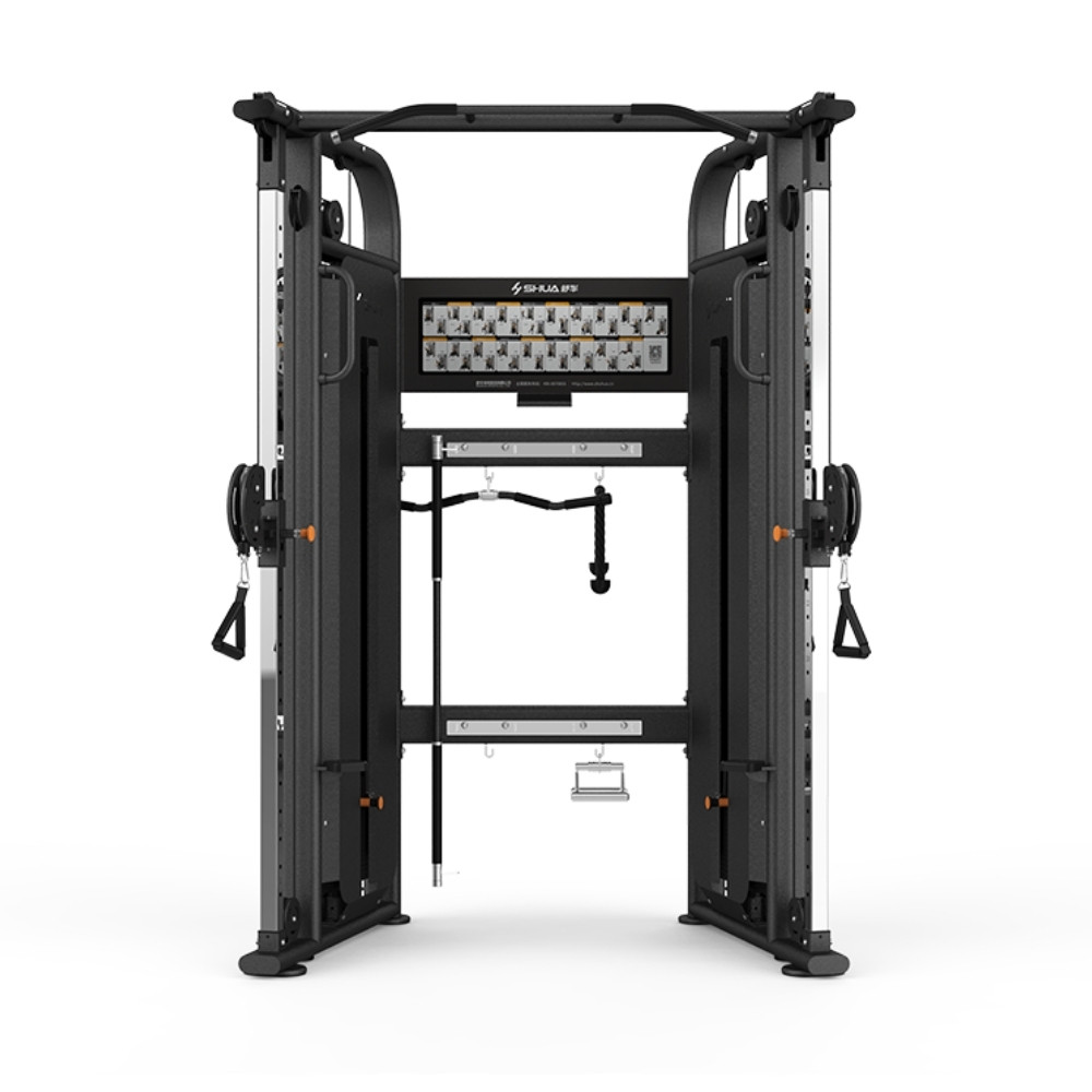 Aparat cadru Functional Trainer Model: SH‑G6820 (Dual Adjustable Pulley)Face parte din seria Cable Motion / 68 Selectorized a companiei SHUA, destinată atât utilizării profesionale în săli de fitness, cât și pentru home-gym-uri high-end.