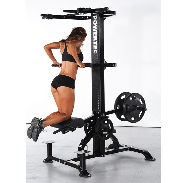 Aparat pentru tractiuni si triceps ce permite realizarea exercitiilor pentru spate, biceps, triceps, abdomen si coapse. Exercitii precum: tractiuni simple, tractiuni asistate, flotari la paralele simple si asistate, crunchuri laterale din suspendat, ridicarea genunchilor la piept din suspendat si genuflexiuni asistate.Ca asistare, aparatul utilizeaza discuri olimpice, ce se incarca manual. Astfel, parghia creata actioneaza pentru a contrabalansa greutatea corporala proprie, permitand executarea unor miscari complete.Dimensiune produs: 113 x 157 x 220 cmGreutate maxima utilizator: 181 kgCuloare: negruProducator: Powertec.