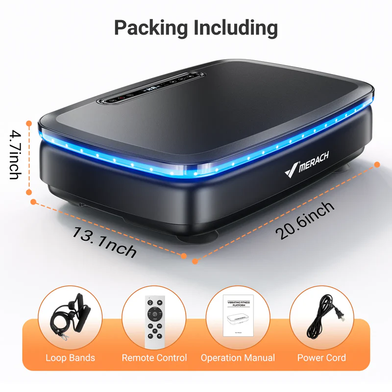Aparatul de vibrații MERACH oferă diverse moduri de exercițiu, inclusiv moduri manual și automat, cu 10 niveluri de selectare a vitezei de vibrație. Echipat cu benzi de antrenament de rezistență, oferă antrenamente complete pentru întregul corp. Doar 10 minute pe zi mărește densitatea minerală osoasă și ameliorează stresul, permițându-vă să obțineți un fizic perfect fără efort.