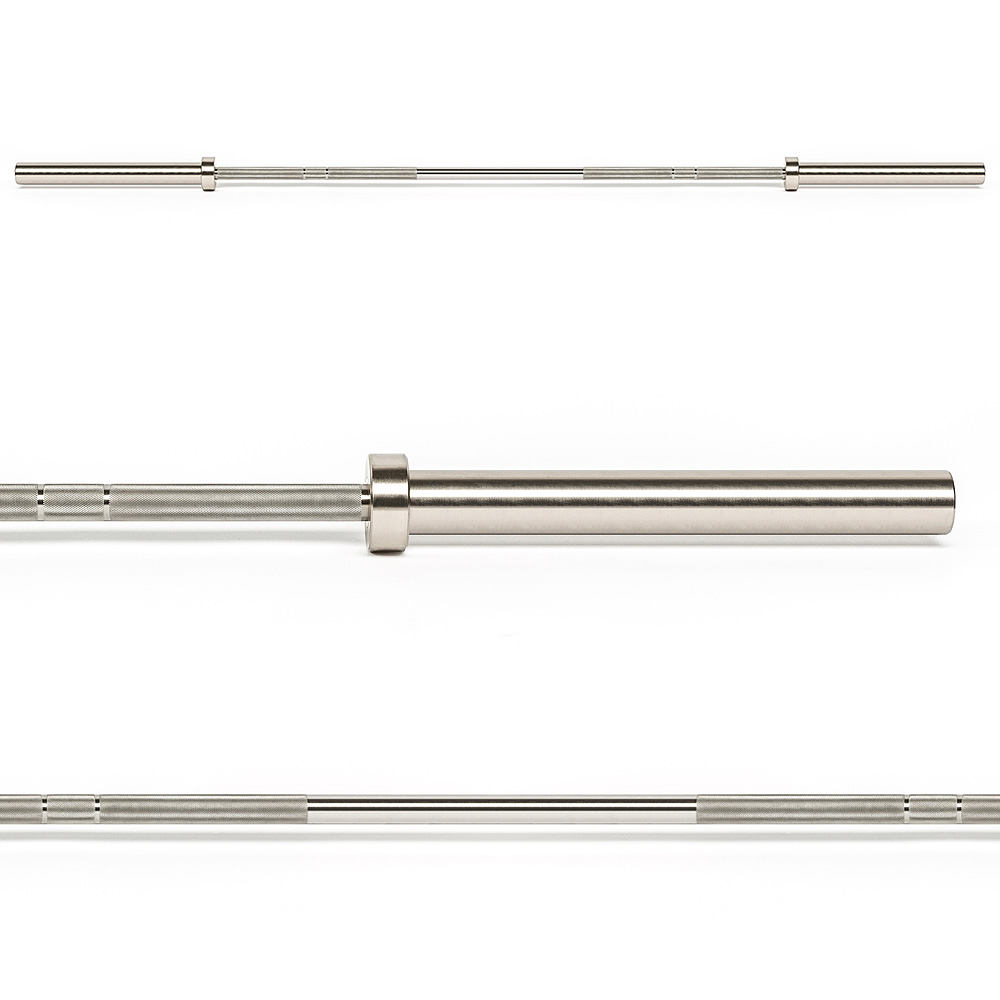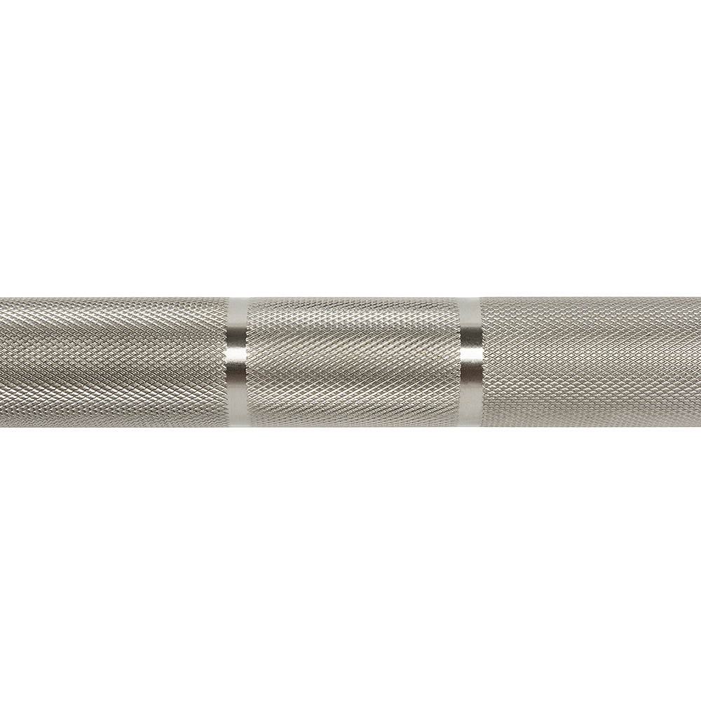 Greutatea barei este de 20 kg, cu o toleranță minimă, iar diametrul prinderii de 28,5 mm asigură o aderență confortabilă pentru utilizatori. Marcajele duble pentru prindere (810/910 mm) facilitează găsirea poziției corecte a mâinilor indiferent de tipul exercițiului. Bara nu are texturare centrală, reducând astfel riscul de iritații pentru piele la exercițiile cu contact prelungit pe ceafă sau piept.