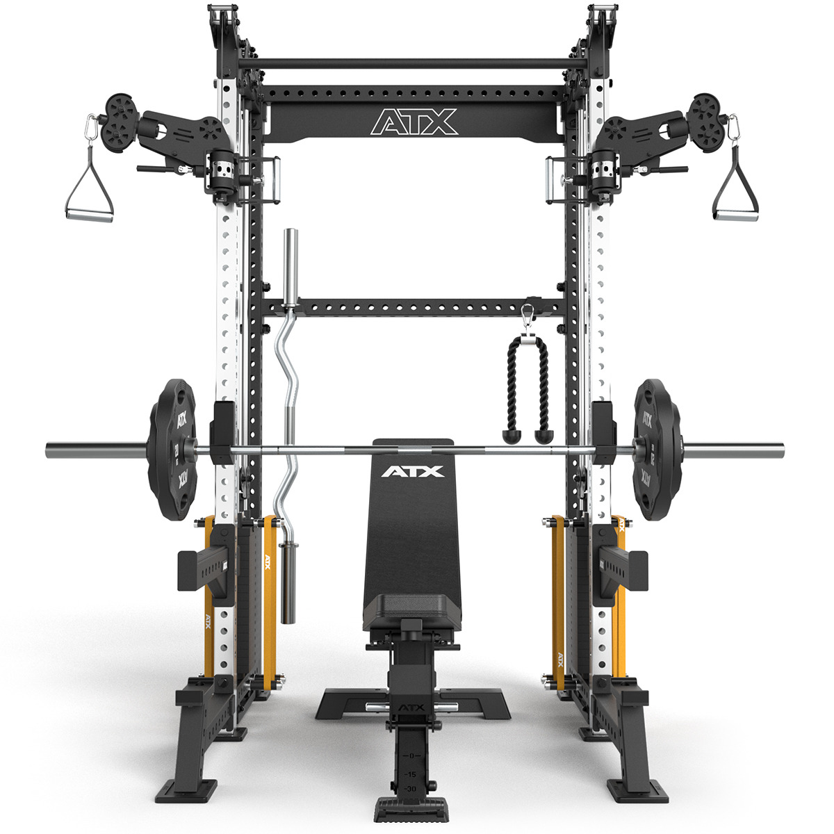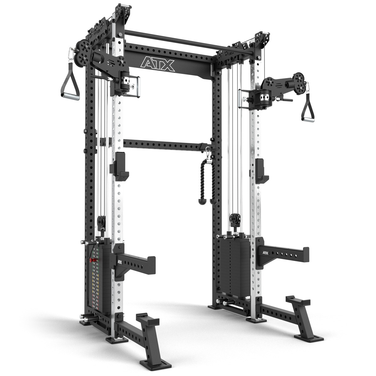 ATX Cable Half Rack cu 2 x 90 kg greutati pe stiva este o solutie profesionala si robusta, conceputa pentru salile de sport care au nevoie de versatilitate, functionalitate si siguranta absoluta. Acesta combina beneficiile unui half rack clasic cu un sistem de cabluri cu doua stive a cate 90 kg fiecare, permitand atat antrenamente de forta cu bara, cat si exercitii izolate la cablu.