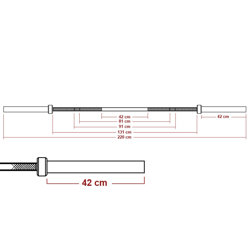 Capacitatea de încărcare impresionantă de 700 kg garantează rezistența și durabilitatea necesare antrenamentelor la cel mai înalt nivel. Bara are o lungime totală de 2200 mm și un diametru al zonei de prindere de 28,5 mm, ceea ce asigură un control optim în timpul exercițiilor.