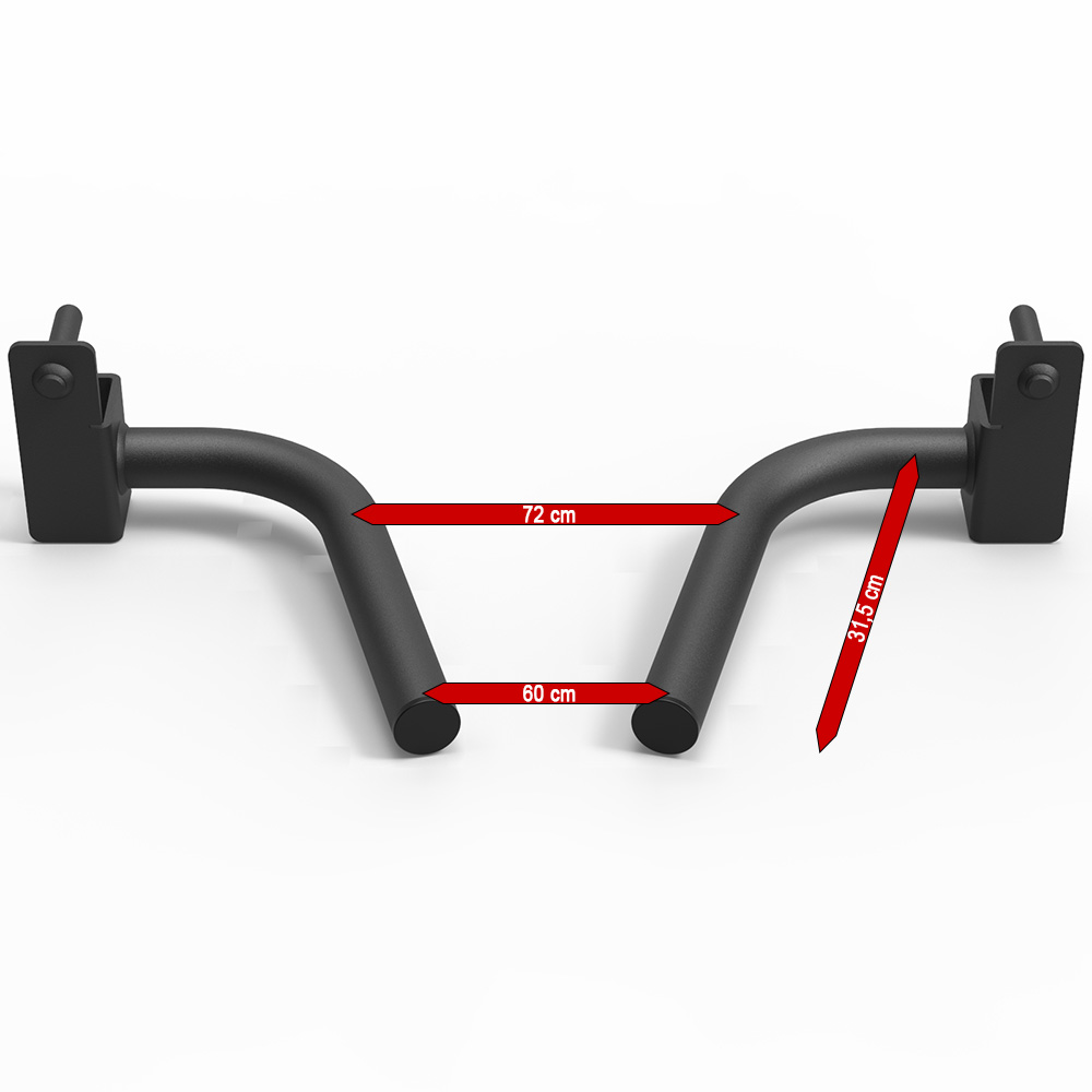 Realizat din oțel robust de 6 mm grosime și țeavă de oțel cu secțiunea de 45 x 3,6 mm, acest accesoriu oferă o rezistență ridicată la utilizare intensă, cu o capacitate de încărcare de până la 160 kg pe pereche. Suprafața este acoperită cu pulbere în culoare negru mat cu textură fină, oferind astfel nu doar un aspect modern, ci și protecție împotriva zgârieturilor și a uzurii. Lățimea mânerelor de 320 mm și diametrul de 45 mm asigură o prindere confortabilă și ergonomică, potrivită pentru o varietate de exerciții pentru triceps, piept și umeri. Cu o greutate proprie de 6,2 kg pe pereche, acest dip barren este ușor de montat și demontat de pe rack, oferind flexibilitate maximă antrenamentului tău. Produsul respectă standardele de siguranță și calitate conform EN 20957 I.II.IV - S și beneficiază de o garanție extinsă de 3 ani.