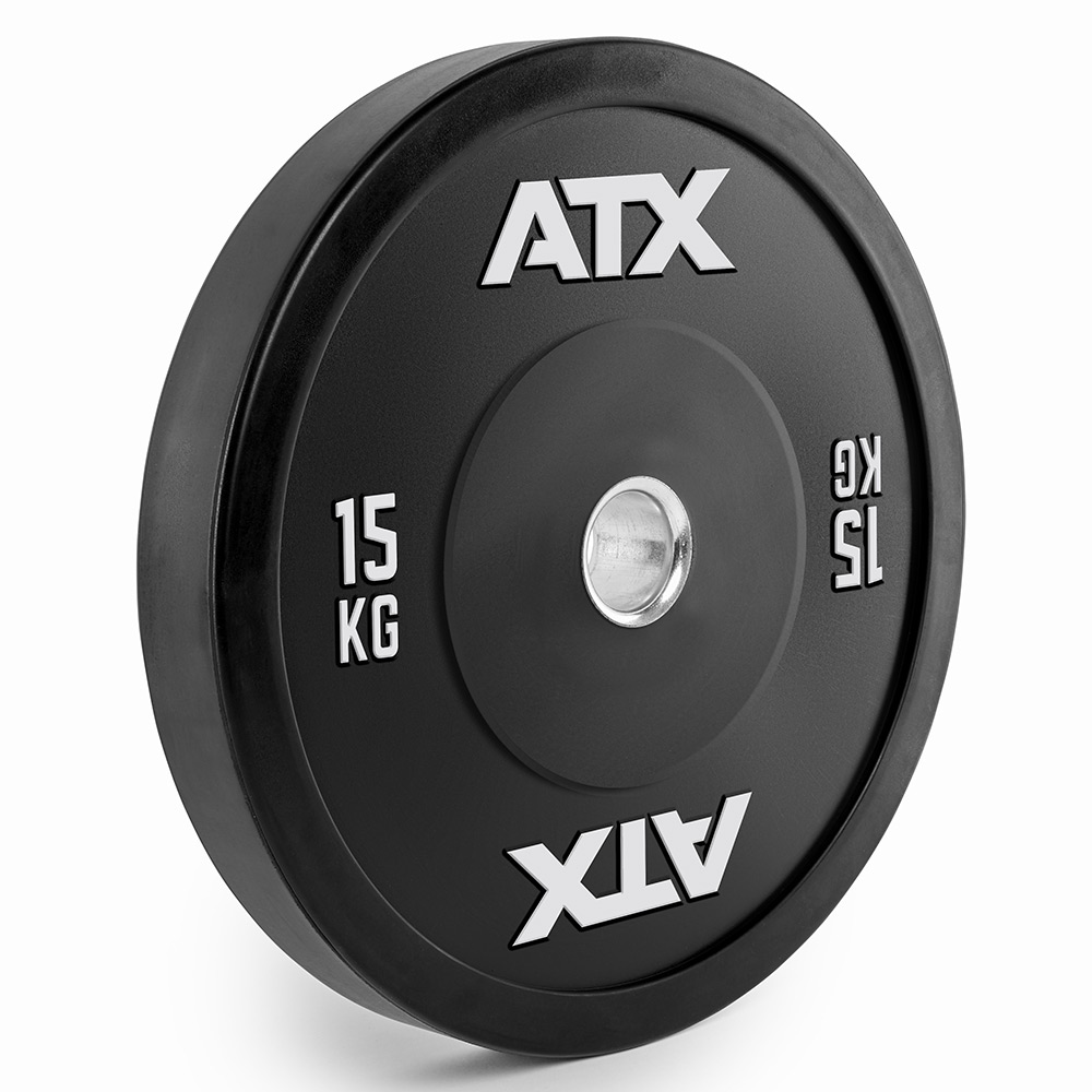 Placa olímpică profesională de tip bumper ATX®, cu greutate de 15 kg, este proiectată special pentru antrenamente solicitante în săli de fitness și centre de forță. Fabricată integral din cauciuc masiv, această disc oferă o rezistență sporită la uzură și o amortizare deosebită la impact, fiind ideală pentru ridicări cu aruncare, powerlifting, crossfit și alte forme de antrenament intens în care săriturile și aruncările cu greutăți sunt prezente în mod constant.