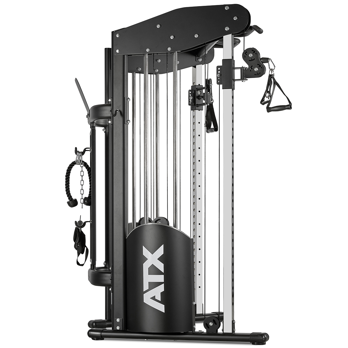 Fiecare coloană dispune de o greutate de 90 kg, oferind rezistență suficientă pentru utilizatori de toate nivelurile. Construcția solidă din materiale de calitate superioară asigură durabilitate și siguranță pe termen lung. Finisajul negru, acoperit cu pulbere și structură fină nu doar că oferă un aspect modern, dar protejează echipamentul împotriva zgârieturilor și uzurii. ATX® Dual Pulley 2 x 90 kg este alegerea ideală pentru spații care vizează performanță, funcționalitate și rezistență maximă.