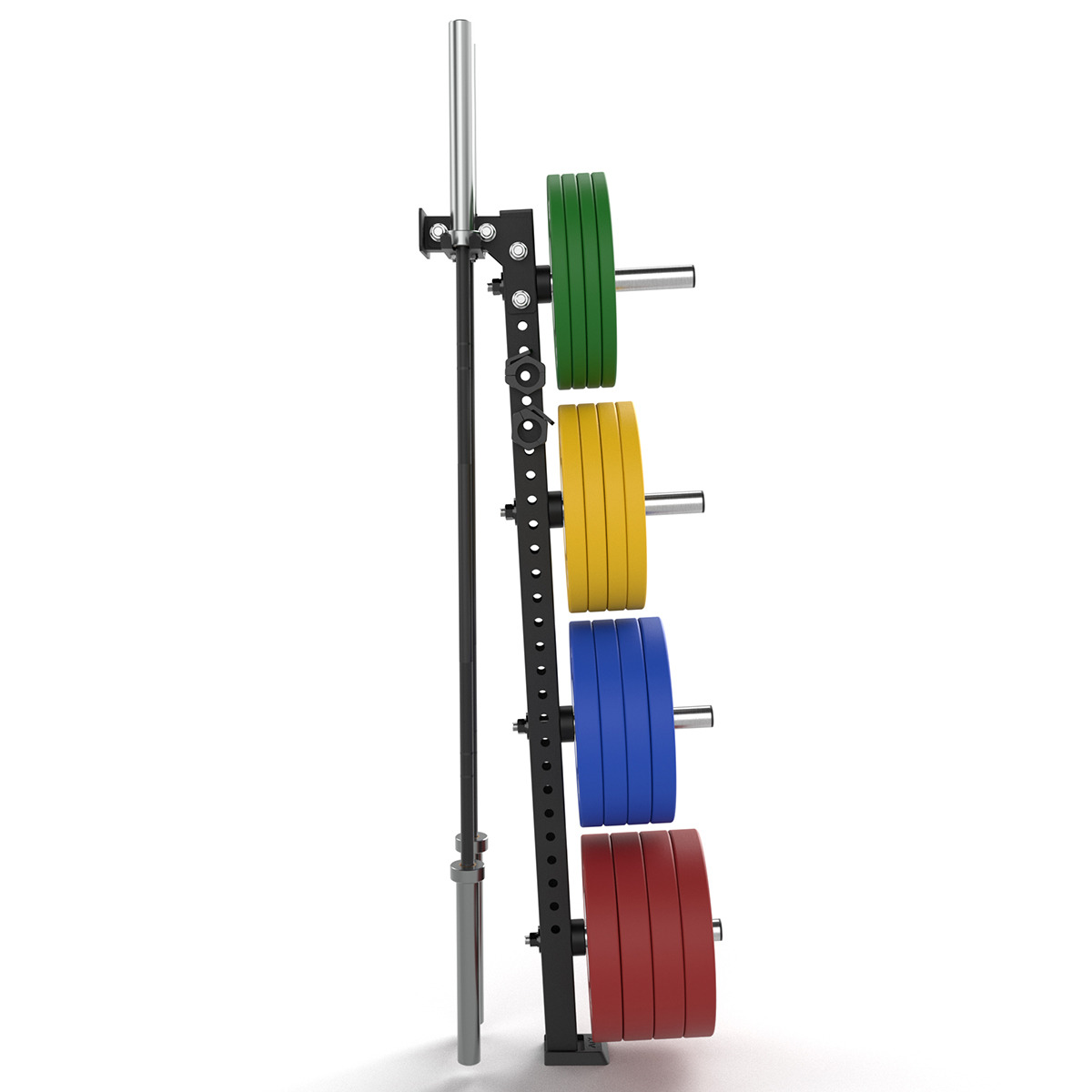 Cu o construcție solidă și o capacitate de încărcare impresionantă de până la 500 kg, acest model se distinge prin finisajul său negru-mat, cu textură fină, acoperit prin pudrare pentru o durabilitate îndelungată. Datorită designului său inteligent, suportul facilitează depozitarea verticală a discurilor, economisind spațiu prețios și asigurând totodată stabilitate maximă. Este potrivit atât pentru utilizatori casnici exigenți cât și pentru facilități profesioniste de fitness.