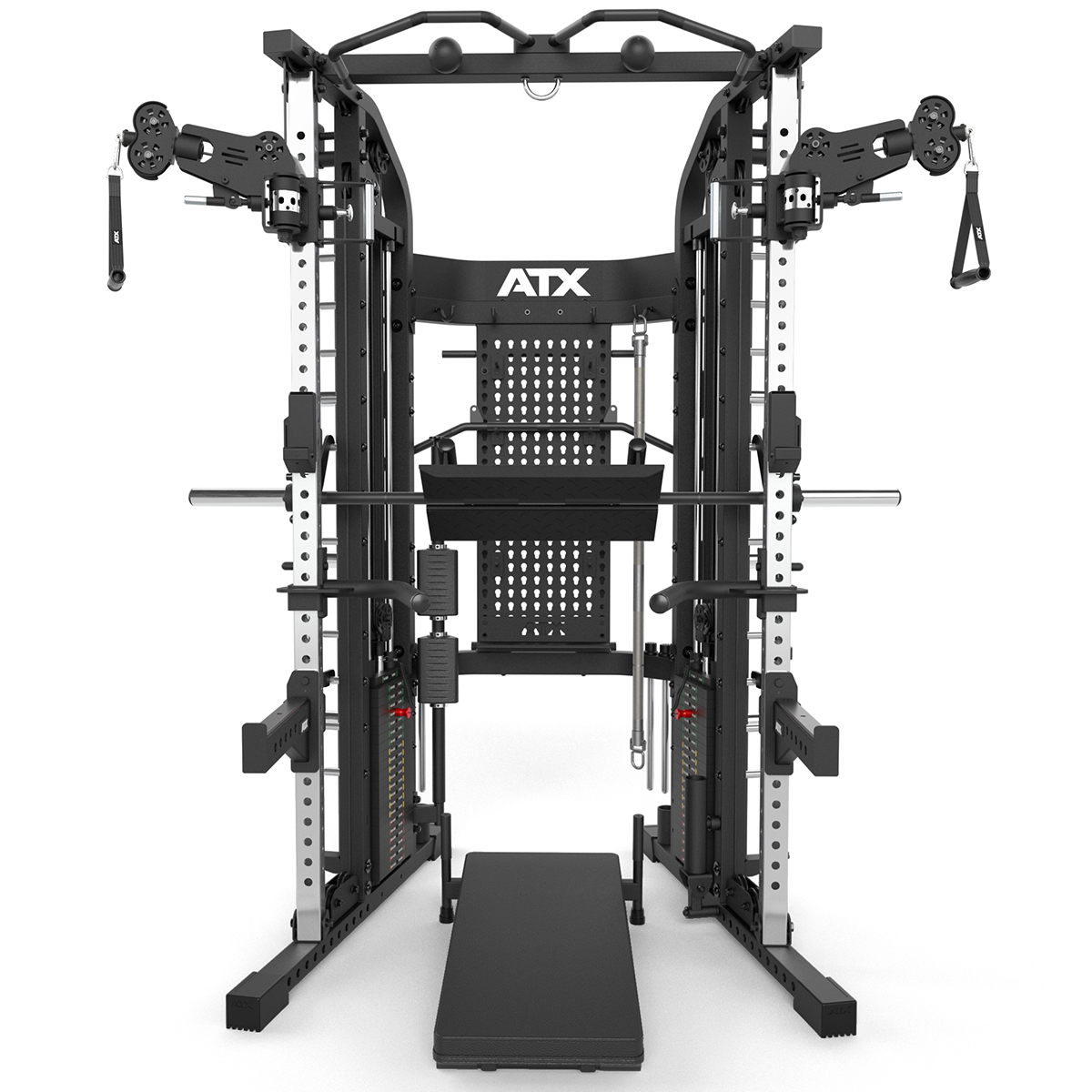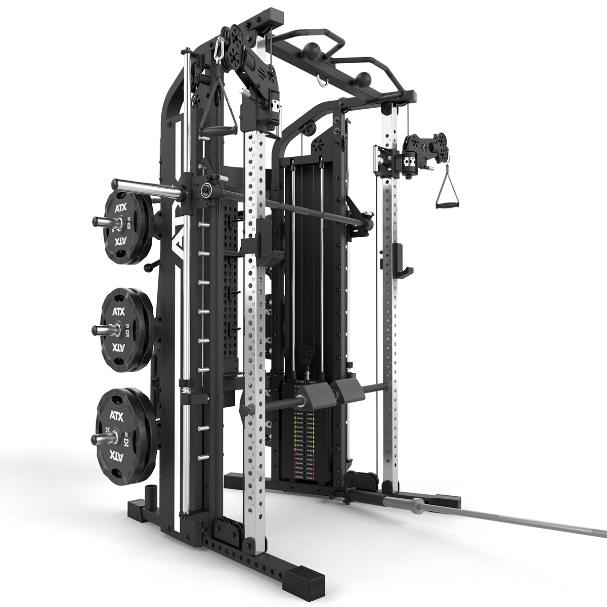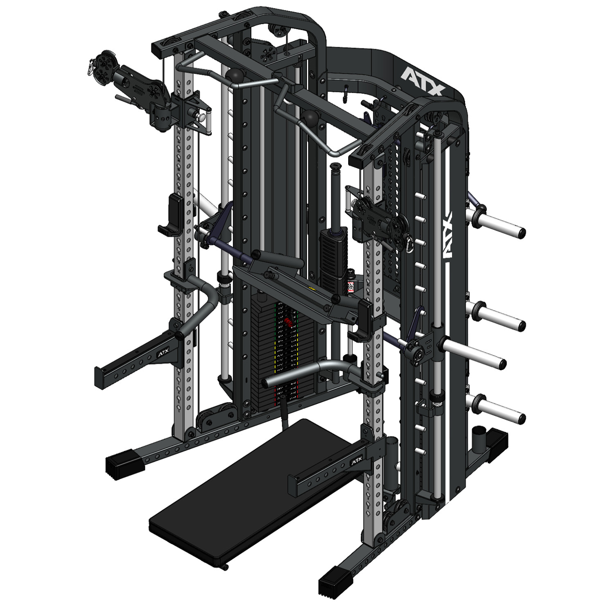 Descoperă ATX Kraftstation - MONSTER 2.0 Komplettstation, un echipament profesional de fitness proiectat pentru utilizare intensivă în săli de sport și centre de performanță. Această stație de forță multifuncțională este construită la cele mai înalte standarde, oferind stabilitate excepțională, siguranță maximă și durabilitate pe termen lung. Cadrul robust susține până la 1.000 kg, iar componentele esențiale – J-Hooks, Safety Spotter Arms, bara de tracțiuni, multipresa, presa pentru picioare și bară de flotări – au fiecare o capacitate individuală ridicată de încărcare, asigurând astfel un antrenament sigur indiferent de exercițiile executate.