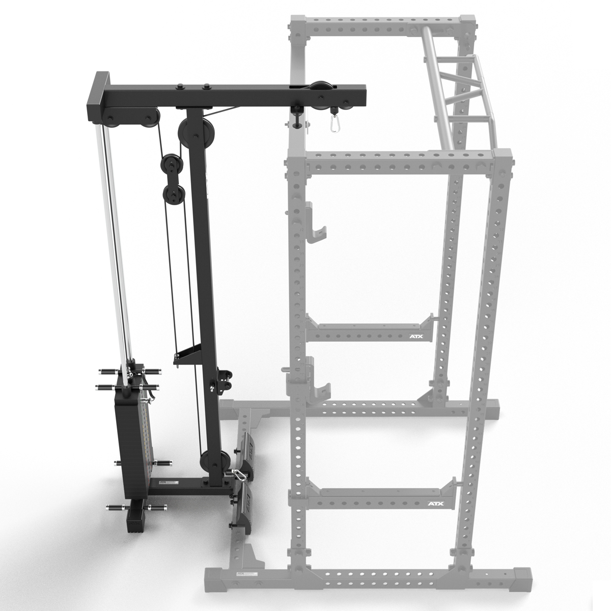 ATX® Latzug Option este o completare de top pentru rack-urile PRX-640 si PRX-660, oferind o experienta profesionala in antrenamentul spatelui. Acesta permite executarea eficienta a tractiunilor la helcometru si a altor exercitii de tragere, beneficiind de un mecanism de incarcare cu greutati pe stift pentru ajustarea rapida si precisa a rezistentei.