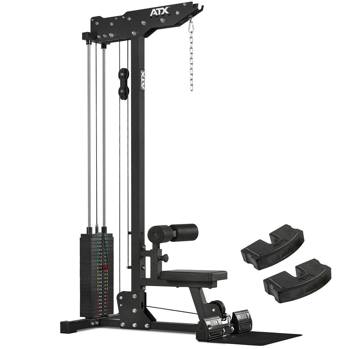 ATX Latzuggerät LSW-750 cu 117,5 kg greutăți pe stivă este o stație profesională de tracțiuni pentru spate, proiectată special pentru sălile de sport și antrenamentele de performanță. Acest aparat oferă o funcționalitate excelentă, având un design robust ce garantează o utilizare sigură și stabilă chiar și sub sarcini mari. Greutățile selectabile permit adaptarea exercițiilor pentru orice nivel de experiență, oferind utilizatorului o versatilitate sporită în antrenamentul pentru spate, bicepși și umeri.