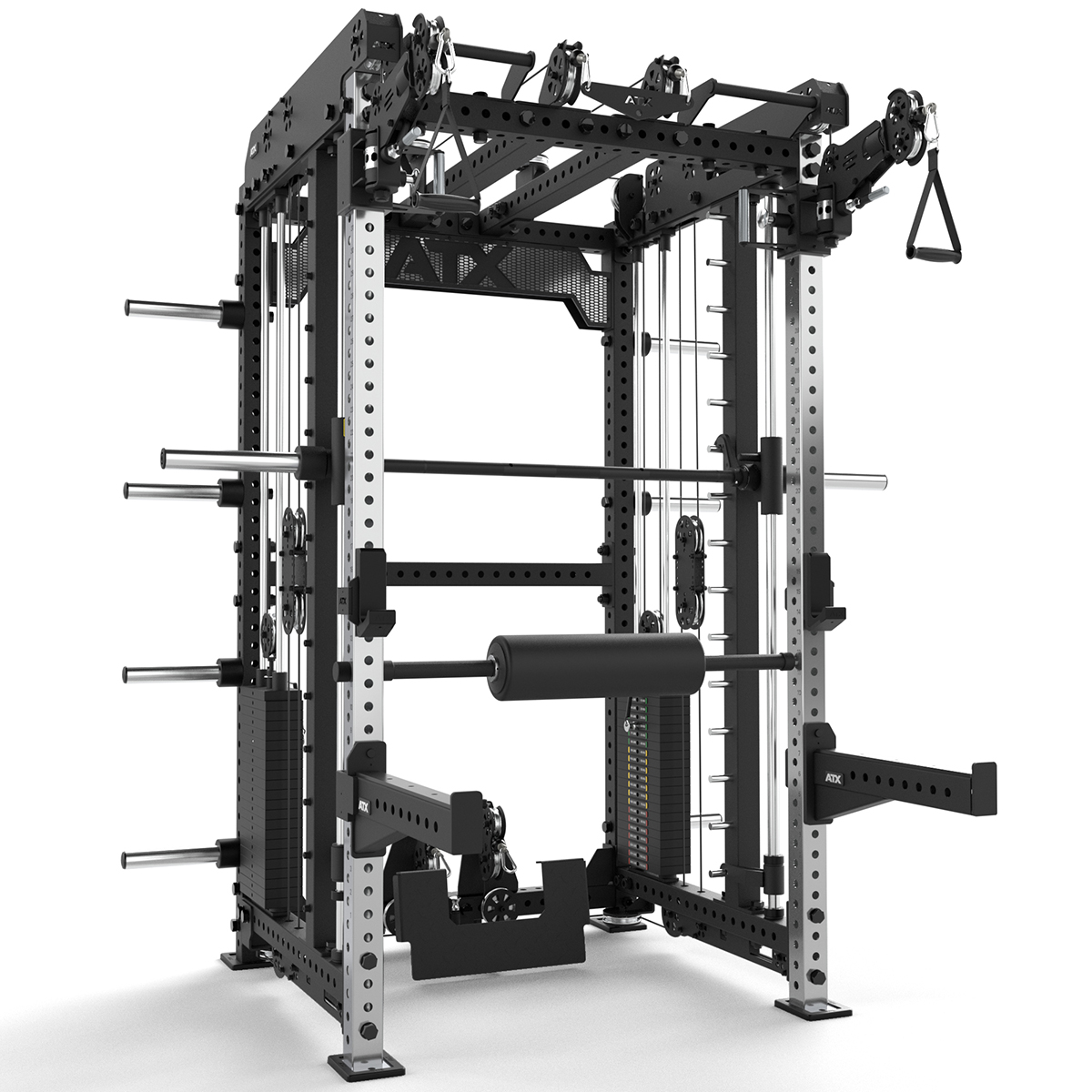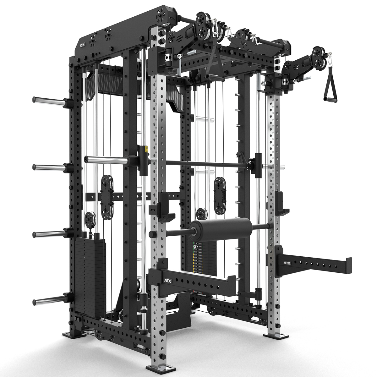 ATX Multi Pull Smith Rack MPHR-780 este o structură profesională dedicată antrenamentelor de forță performante, potrivită atât pentru sălile de fitness comerciale, cât și pentru spații de antrenament personale de elită. Construcția robustă, realizată din profil de oțel cu secțiune de 70x70x3 mm, oferă stabilitate și siguranță ridicate în timpul utilizării intense, satisfăcând cele mai înalte standarde de calitate.