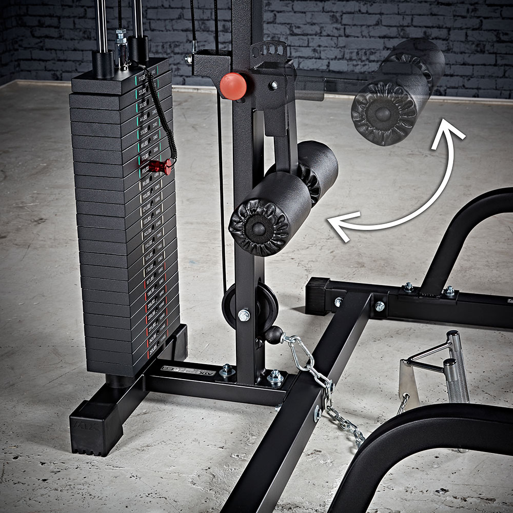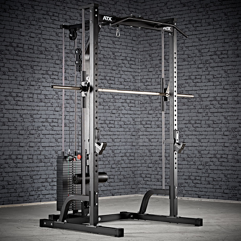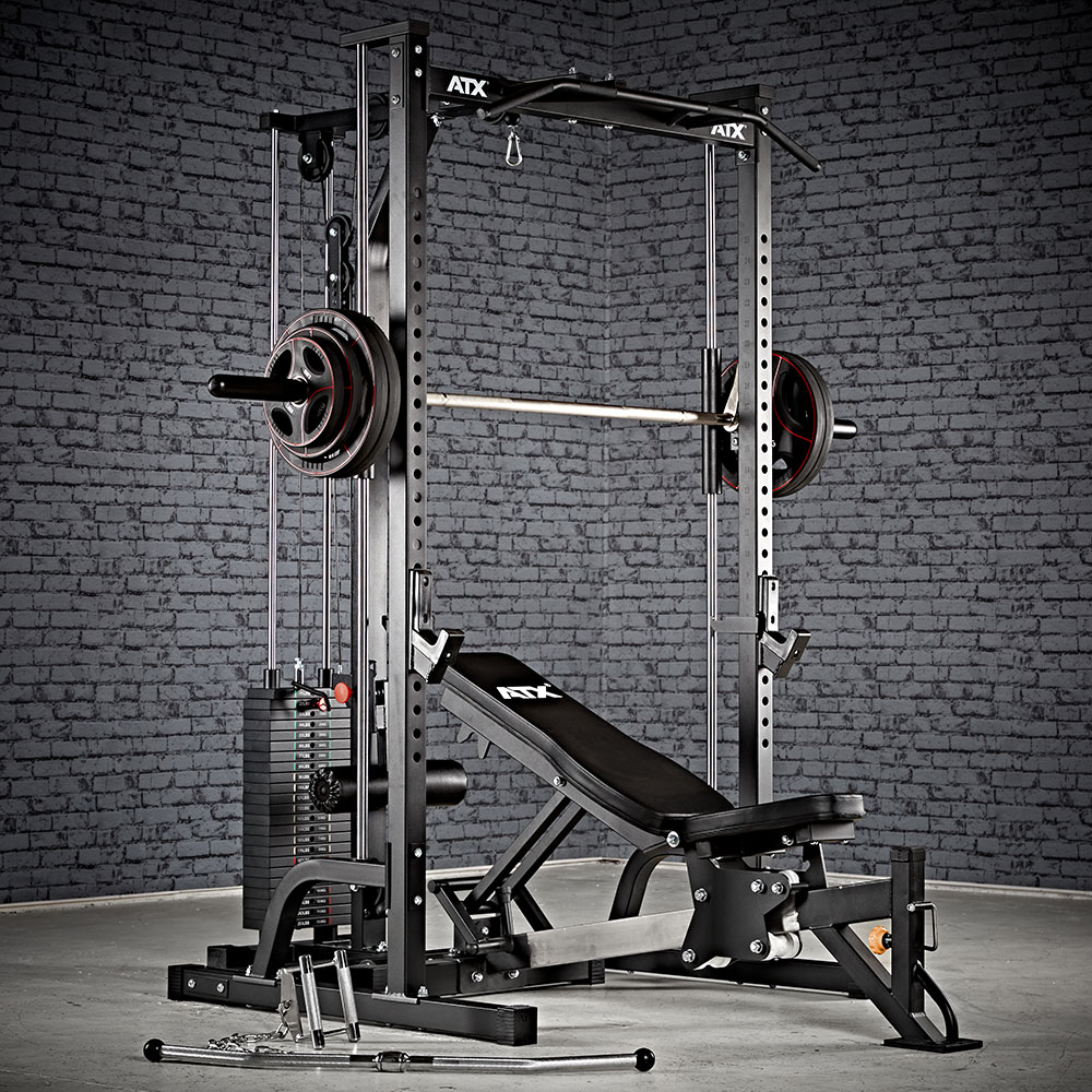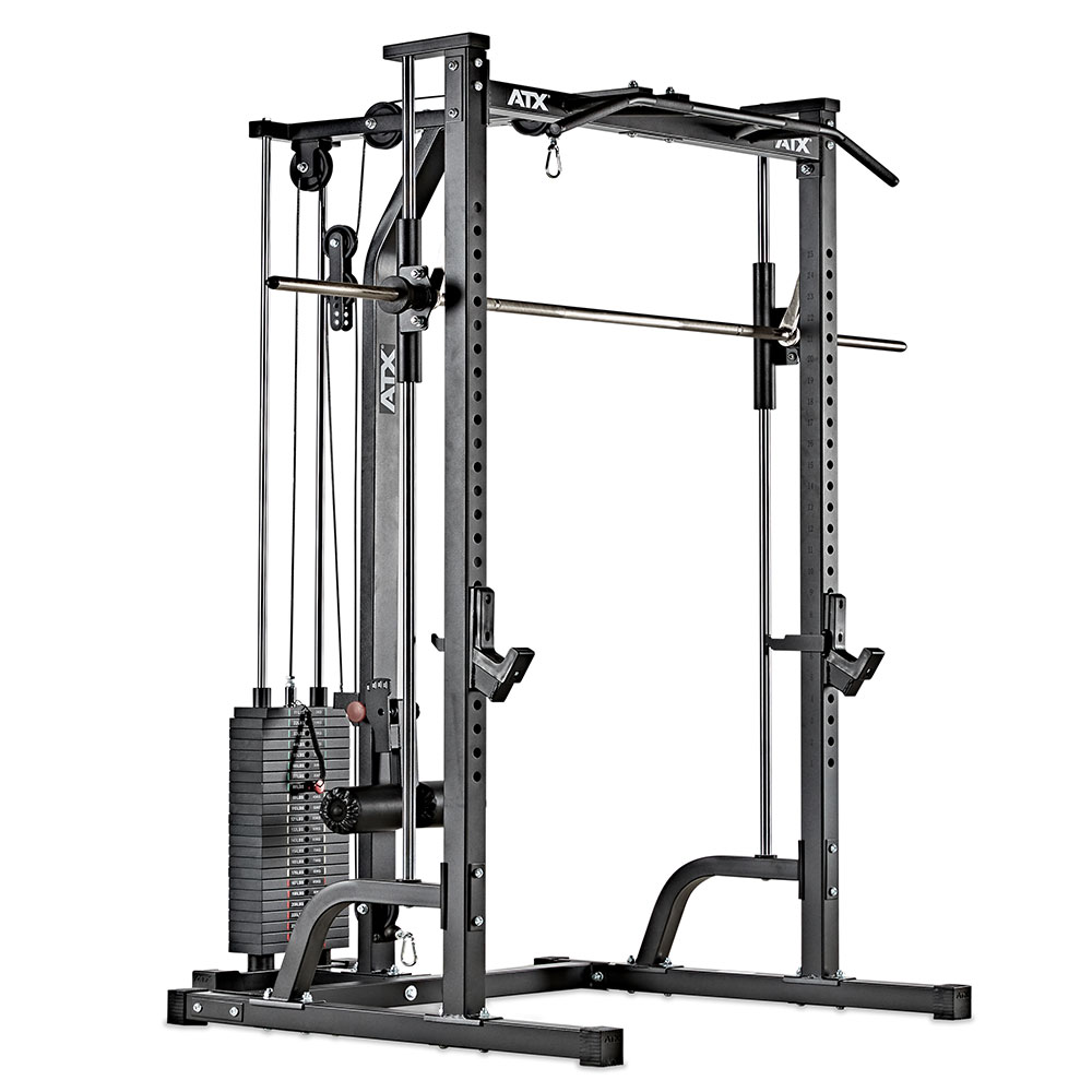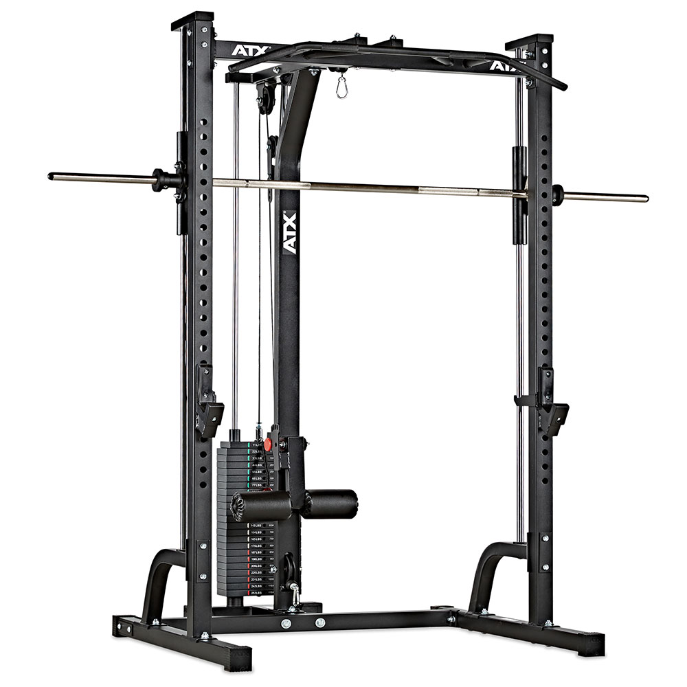 ATX® Multipresa cu aparat pentru tracțiuni spate și 115 kg greutăți pe stivă este echipamentul complet pentru antrenament, conceput pentru a oferi versatilitate și siguranță maximă în cadrul oricărei săli de sport profesionale sau acasă. Această stație multifuncțională permite realizarea unui număr variat de exerciții, de la prese pe bancă la tracțiuni pentru spate, acoperind astfel o gamă largă de grupe musculare importante.