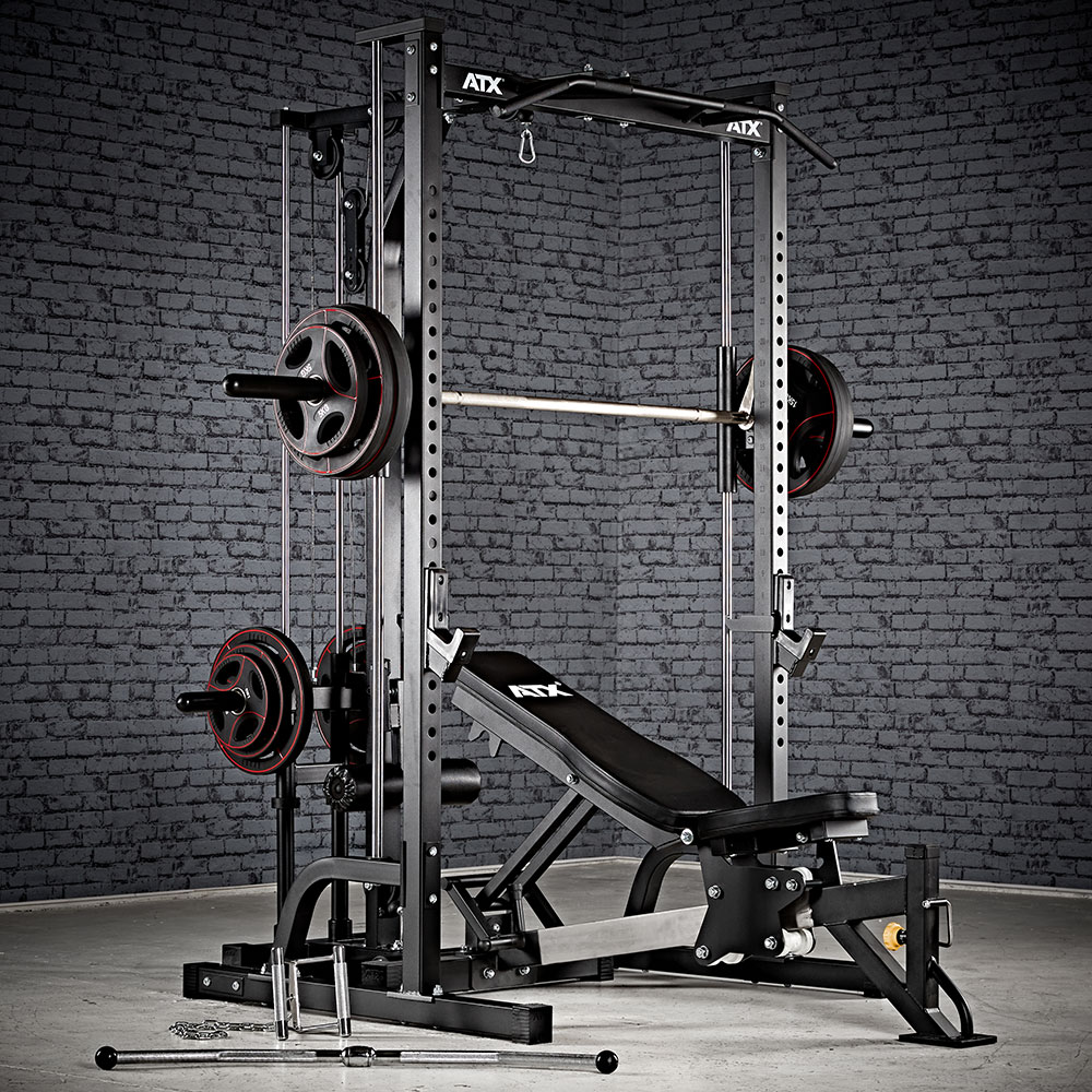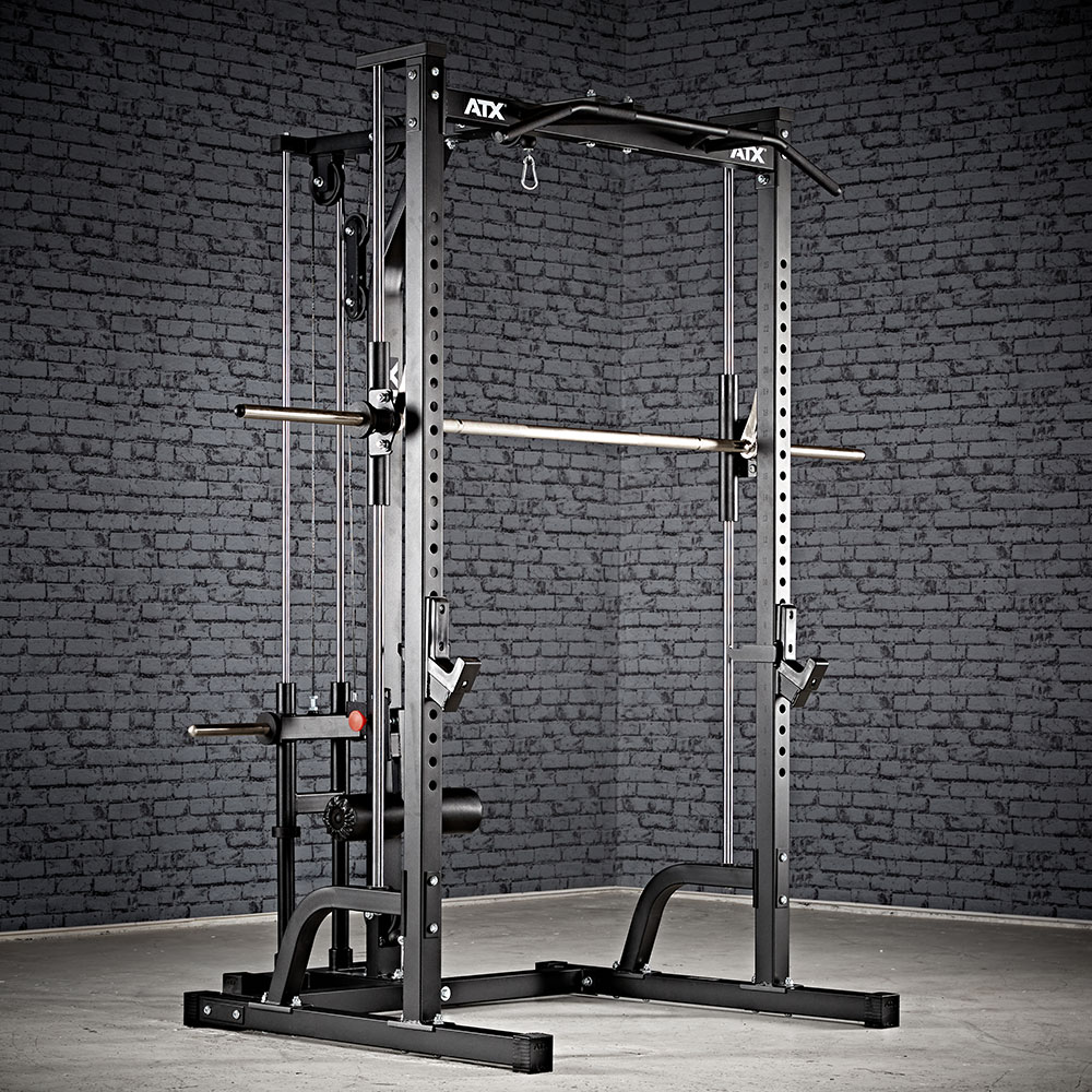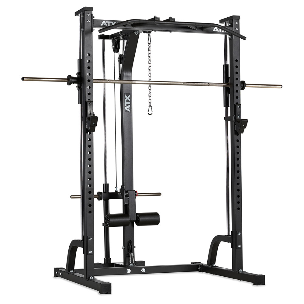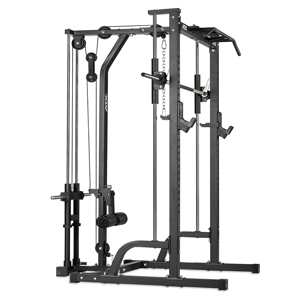 ATX Multipresa cu Stație de Tracțiuni - Plate Load reprezintă o soluție multifuncțională pentru antrenamentele tale de forță acasă sau în sala de fitness. Această stație completă permite executarea unei game variate de exerciții, incluzând mișcări de împins și tracțiuni, asigurând un antrenament complet pentru întregul corp.