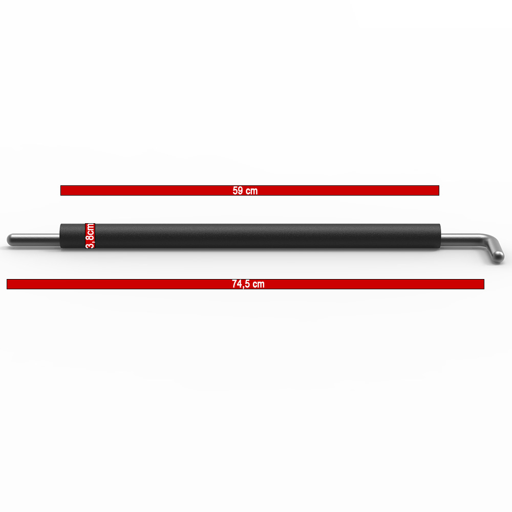 Acesti suporti sunt fabricati din otel rotund de 20 mm combinat cu teava de otel de 38 x 3,0 mm, asigurand o rezistenta excelenta si o capacitate de incarcare impresionanta de pana la 500 kg pe pereche. Cu o lungime de 765 mm, acopera o arie larga de protectie pentru barbell. Finisajul de inalta calitate in crom si negru ofera atat durabilitate, cat si un aspect modern, potrivit pentru orice sala de sport profesionala sau home gym avansat.