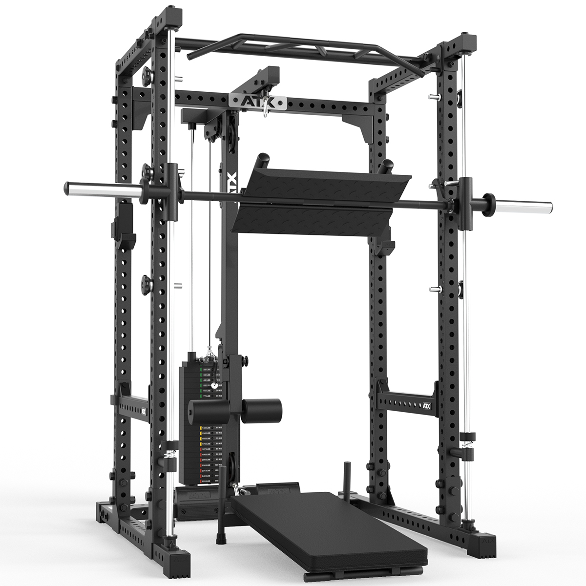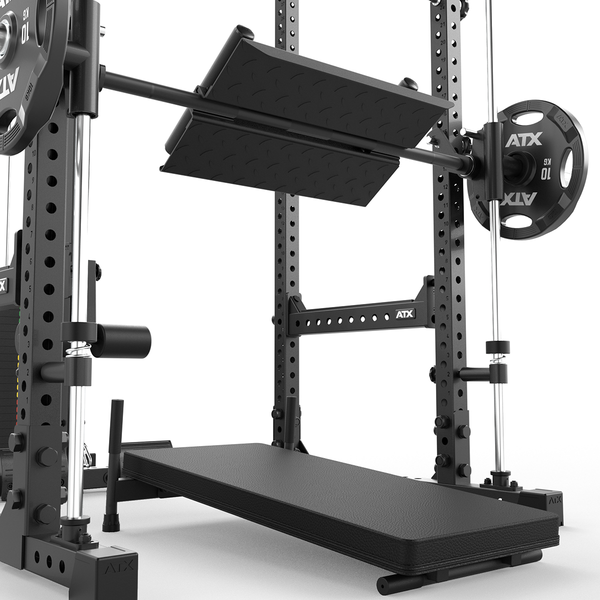 Componentele principale ale produsului sunt polstrul (15 kg) și placa de împins (13 kg), iar capacitatea maximă de încărcare este de 150 kg. Această opțiune este alegerea perfectă pentru utilizatorii care doresc să adauge exerciții suplimentare și să valorifice la maxim multipresa ATX.