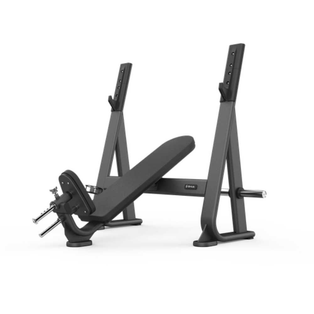 Banca piept înclinata SH‑G6873 Olympic Incline Bench este destinată utilizării intensive în săli profesionale sau acasă. Este ideală pentru exerciții cu bară Olympic în poziție înclinată, fiind proiectată ergonomic pentru confort și performanță.