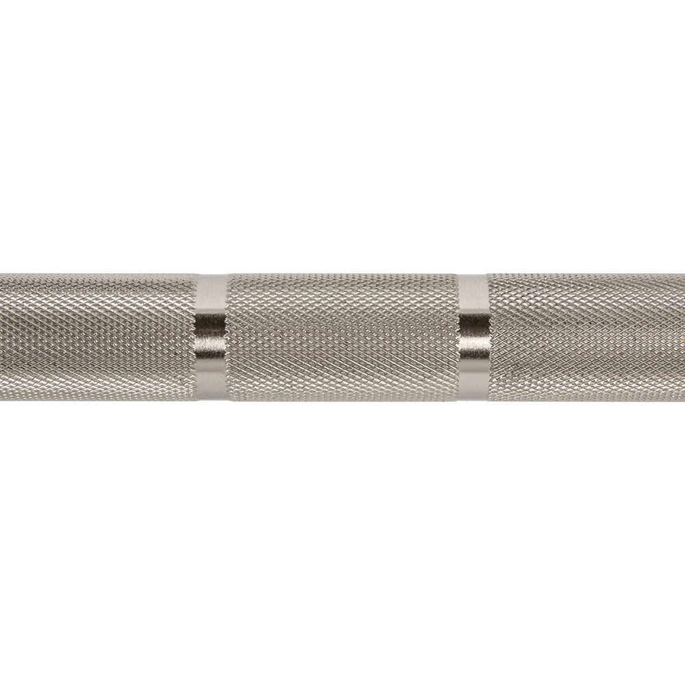 Zona de prindere are un diametru de 25 mm și include marcaje la 810 mm și 910 mm pentru poziționarea corectă a mâinilor. Nu dispune de striație centrală, ceea ce o face mai confortabilă la genuflexiuni sau alte exerciții unde contactul cu partea superioară a spatelui este important. Datorită calității superioare și garanției extinse de 3 ani, este alegerea perfectă atât pentru sportivii amatori, cât și pentru profesioniști.