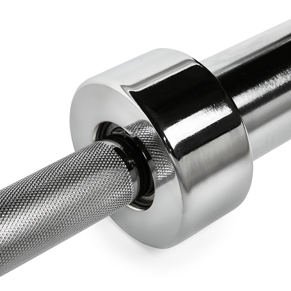 Fabricată cu o atenție sporită la detalii, această bară dispune de un strat de crom lucios atât la mâner, cât și la capetele pentru discuri, oferind un aspect modern și protecție împotriva coroziunii. Sistemul de rulmenți cu ace și bile asigură o rotație lină a discului pentru siguranță și eficiență în timpul fiecărei repetări. Prinderea are un diametru de 28 mm, cu un marcaj de prindere la distanță single - 810 mm și o moletare medie de 1,2 mm, pentru o aderență sigură și confortabilă.