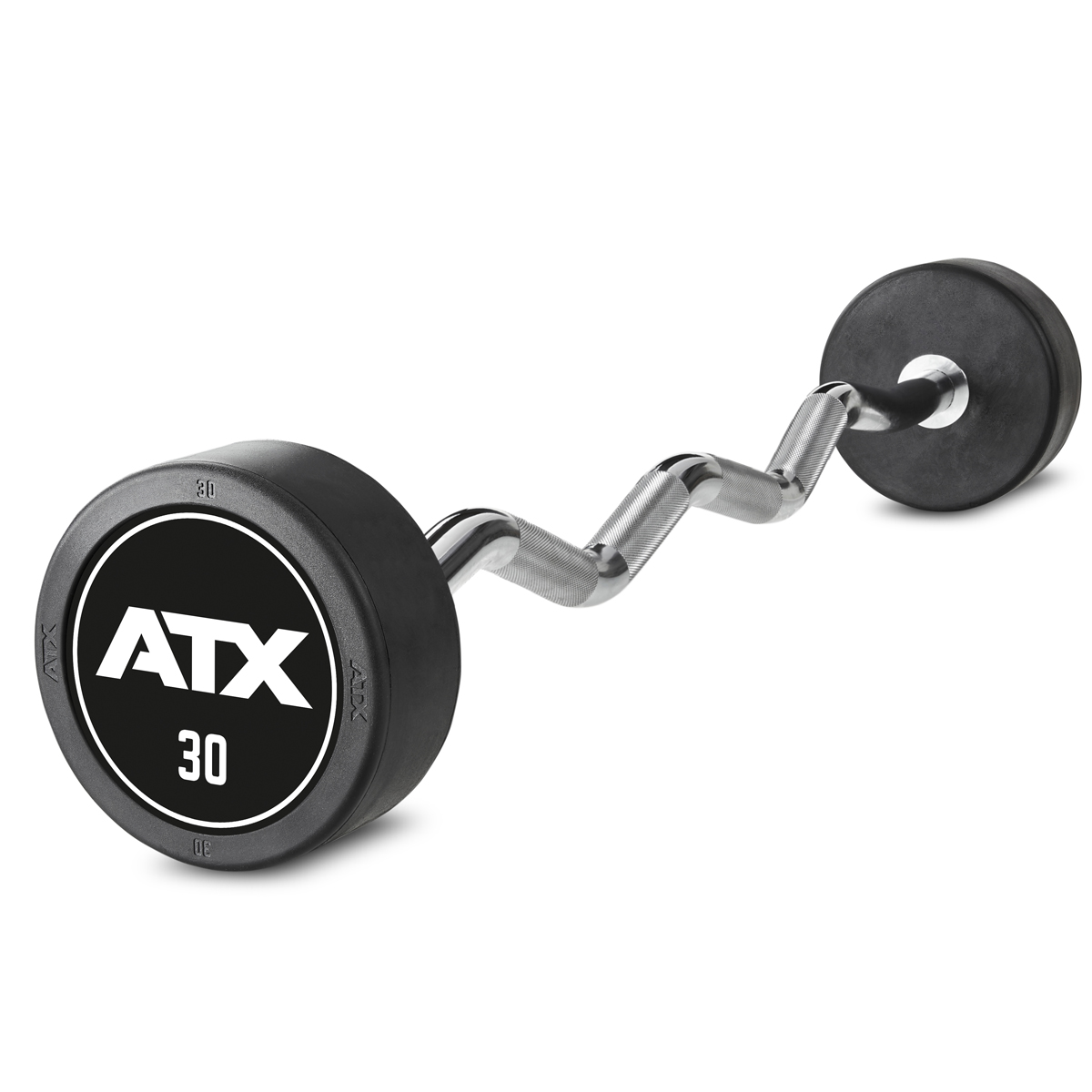 Bară EZ cu finisaj din cauciuc, având logo ATX, cu o greutate de 17,5 kg. Este construită din oțel masiv acoperit cu un strat de cauciuc de înaltă calitate pentru a oferi o rezistență ridicată la șocuri și uzură. Datorită suprafeței sale gumoase, bara protejează suprafața podelei și echipamentele adiacente de eventualele deteriorări, fiind ideală pentru săli de sport sau uz personal.