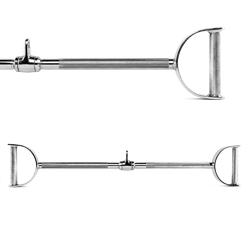 Îți poți antrena spatele într-un mod variat și eficient pentru a obține rezultate maxime! Bara de tracțiuni paralelă din oțel masiv, cromată lucios, cu articulație rotativă, oferă numeroase variații de priză (priză paralelă, largă, îngustă, supinație/pronație) pentru un antrenament diversificat și eficient al spatelui! Suprafețele striate contribuie la un nivel maxim de grip, astfel încât să poți merge în siguranță până la limită!