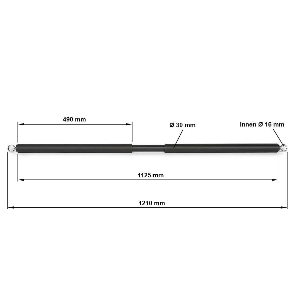 Cu o lungime de 1210 mm și un diametru al prizei de 30 mm, această bară asigură o priză confortabilă, adaptată pentru majoritatea utilizatorilor. Echipată cu ochiuri rezistente pentru montare sau agățarea diverselor accesorii de fitness, bara este fabricată din materiale durabile, ceea ce îi conferă o durată lungă de viață. Aceasta are o greutate de 2,6 kg, fiind ușor de montat sau demontat în funcție de necesități.