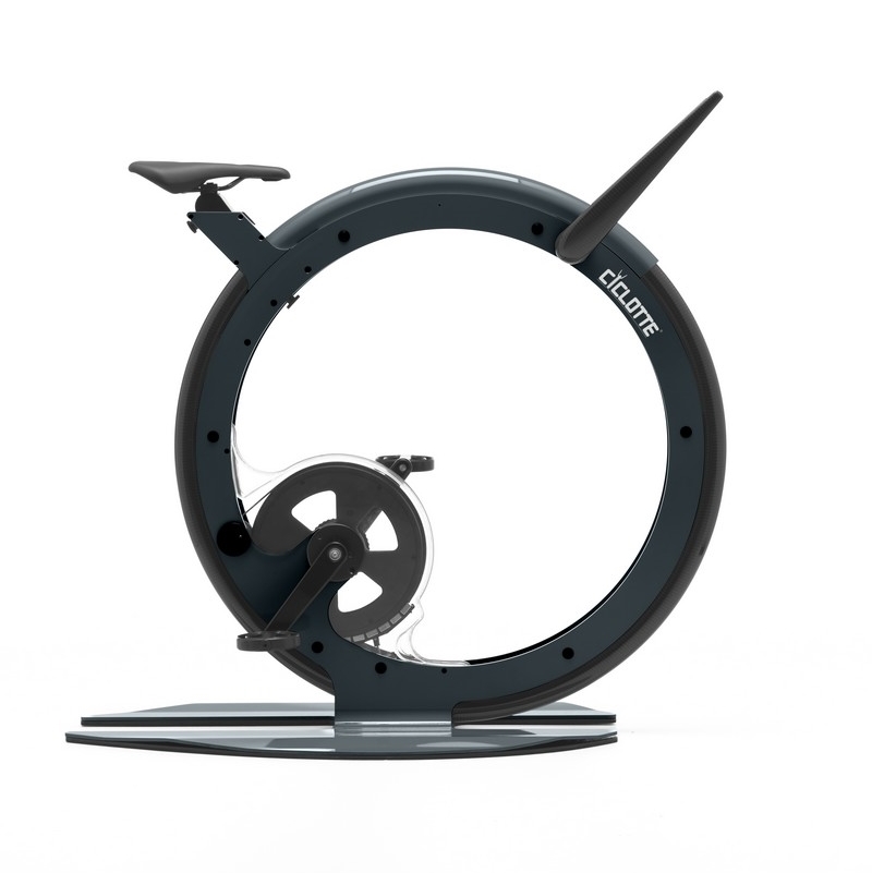 Bicicleta fitness Ciclotte este rezultatul unei cercetari estetice inspirata de ergonomie si esentialitate, fiind realizata din materiale de inalta calitate, cum ar fi otelul si fibrele de carbon. Forma circulara iconica si utilizarea carbonului exprima vocatia sportiva puternica a bicicletei, care este dezvaluita in timpul fiecarei sesiuni de antrenament. Cadrul este conceput pentru a se adapta la cele 5 pozitii de rotire. Transmisia inovatoare a multiplicatorului de rotatie si sistemul rotii exterioare fac exercitiul unic, replicand fidel senzatia de a merge cu bicicleta pe sosea. Rezistenta se obtine cu un sistem electromagnetic sofisticat controlat de la distanta prin Bluetooth. Aceasta bicicleta fitness de lux cu design exclusivist este un excelent echipament de fitness, obiect de decor pentru interiorul caselor, de la camere de zi la dormitoare si bai unice, apartamente de hotel si iahturi.