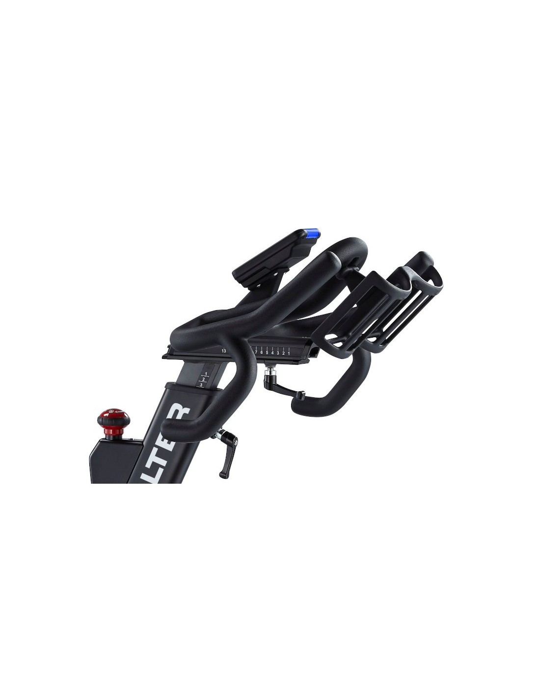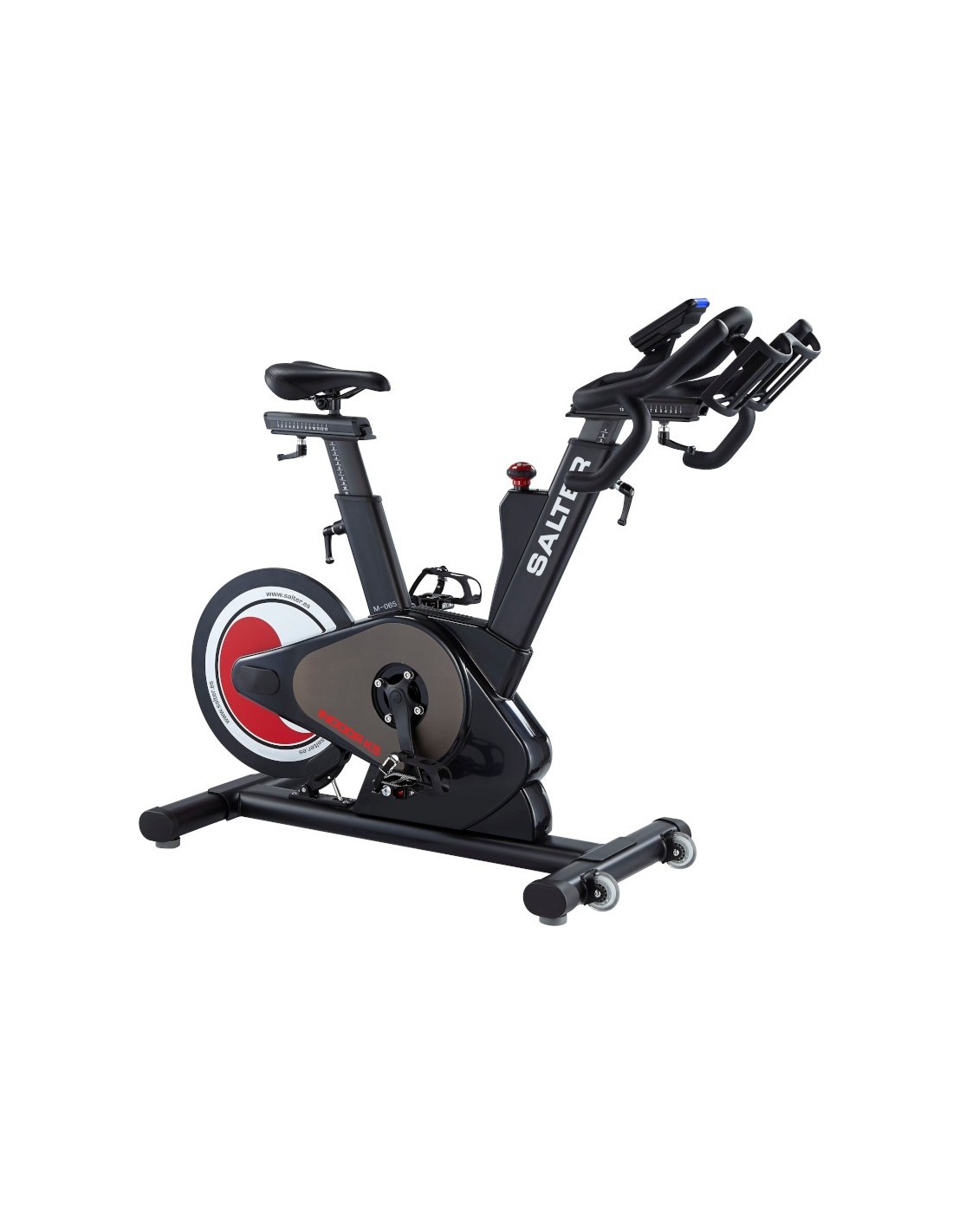 Bicicleta Spinning K5 Bluetooth de la Salter este un echipament cardio profesional, ideal pentru săli de fitness și antrenamente intense. Dispune de cadru ranforsat, sistem de frânare magnetic cu 32 de poziţii, volan de 20 kg, conectivitate Bluetooth pentru aplicaţii precum Zwift şi Kinomap, monitorizare detaliată (puls, watt, RPM) și suport pentru utilizatori până la 180 kg. Echipament premium pentru performanţă maximă!