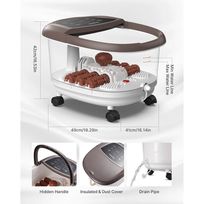 Aparatul spa pentru picioare este prevăzut cu roți, mâner și furtun de scurgere, pentru utilizare cât mai simplă.