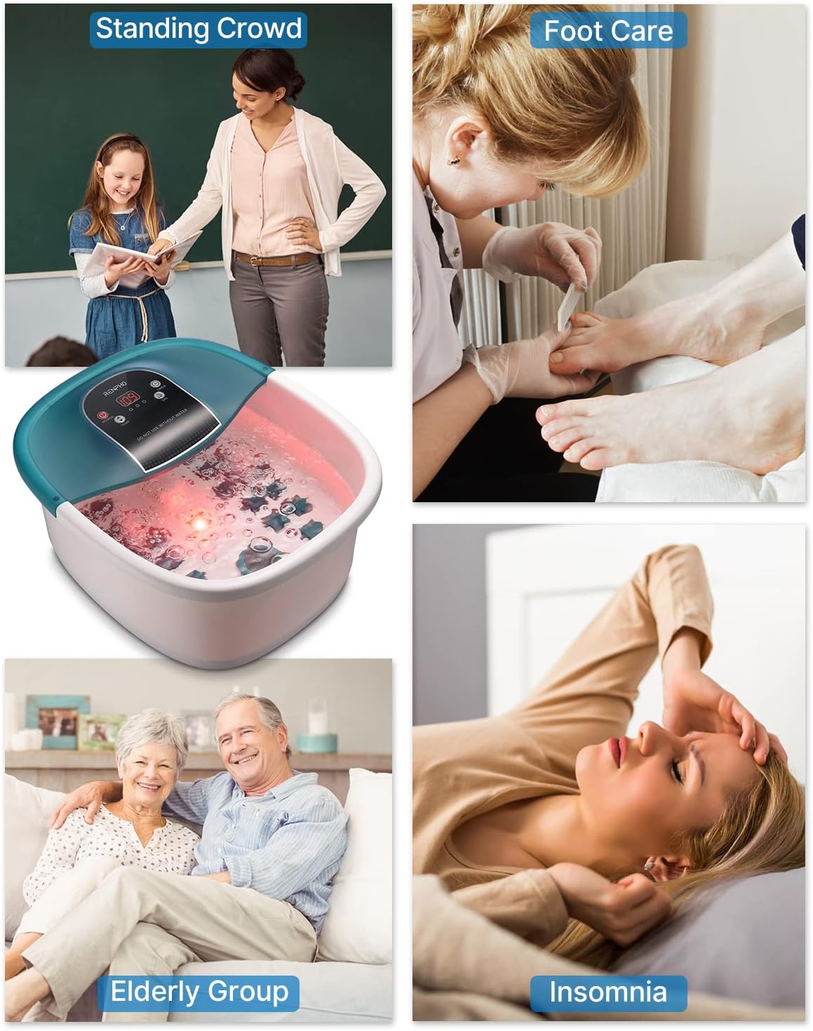 Comparativ cu alte modele, acest aparat spa pentru picioare cu încălzire este echipat cu ștecher GFCI certificat ETL, pentru o utilizare mai sigură. Este potrivit pentru picioare până la mărimea 45 EU (US 11).