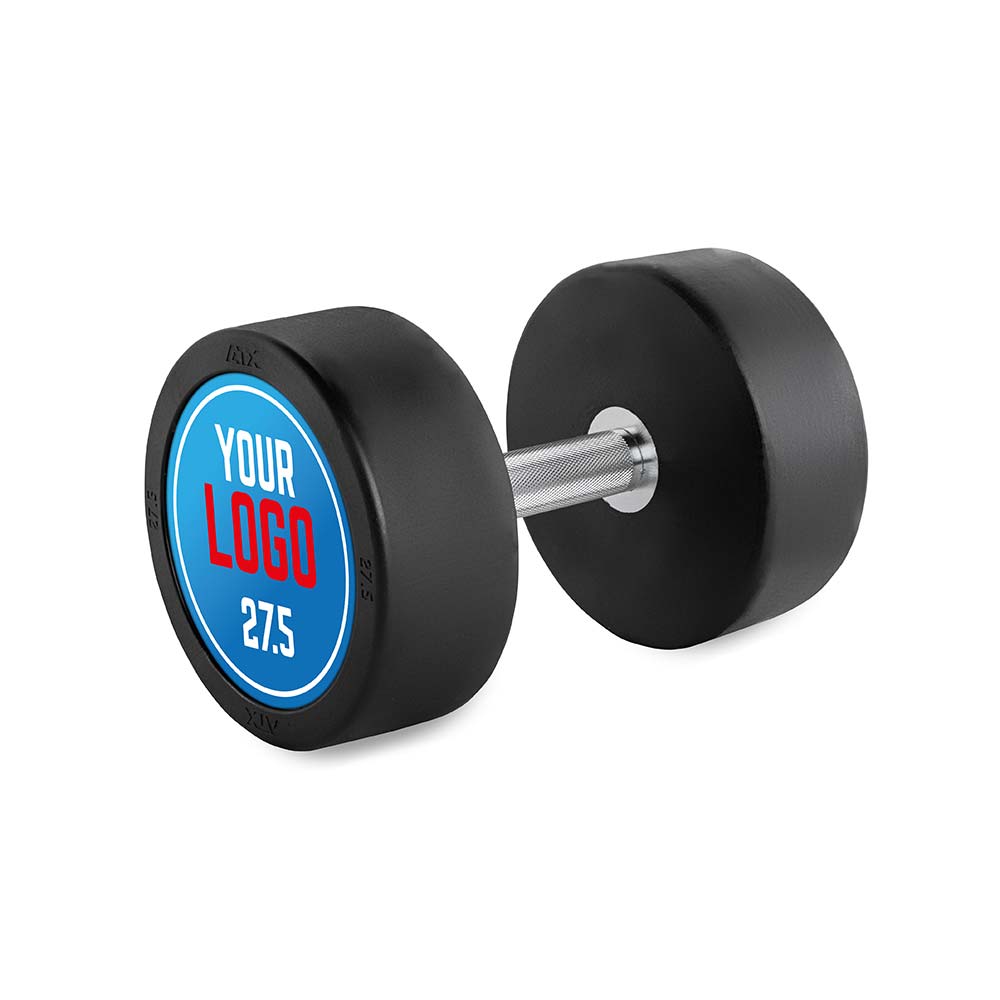 Gantera profesionala din cauciuc de 27,5 kg, realizata integral din otel de inalta calitate si acoperita cu un strat gros de cauciuc pentru rezistenta la uzura si protectie suplimentara. Aceasta gantera dispune de o sigla personalizata imprimata lateral, perfect adaptata cerintelor clientului, ceea ce o transforma intr-o solutie ideala pentru sali de fitness, centre sportive sau uz personal.