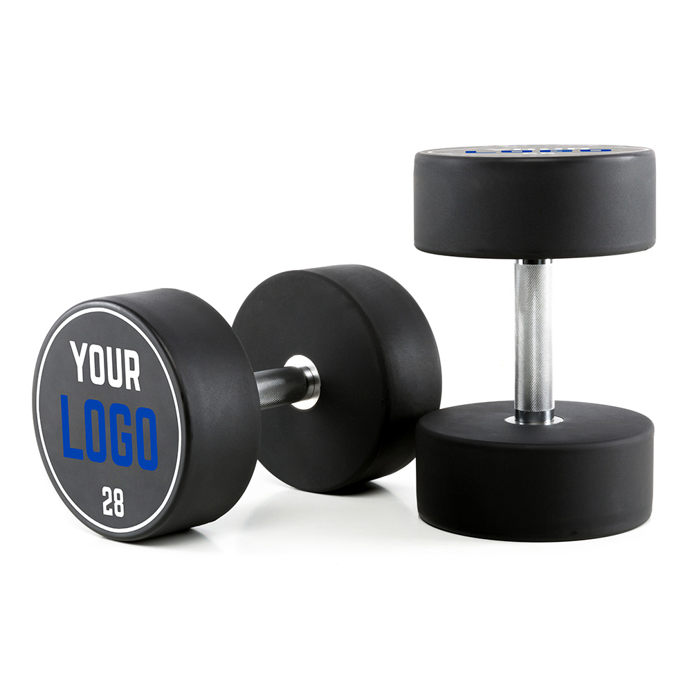 Gantere uretanate cu logo personalizat, perfecte pentru antrenamente profesionale și utilizare intensă în orice sală de fitness. Aceste gantere sunt proiectate pentru a oferi o experiență superioară de antrenament, fiind realizate din oțel masiv și acoperite cu uretan de înaltă calitate. Acoperirea din uretan asigură o rezistență sporită la uzură, protejând atât ganterele cât și suprafețele de impact.