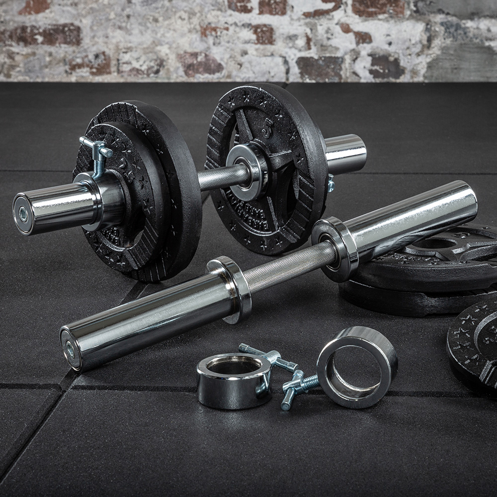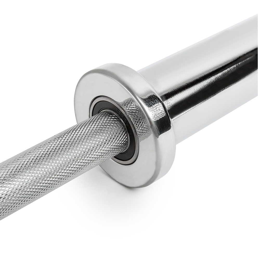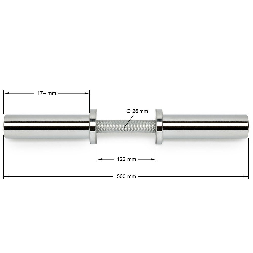Aceasta haltera scurta este ideala pentru antrenamentele de forta, fiind compatibila cu toate discurile cu orificiu de 50 / 51 mm. Fabricata integral din otel masiv, bara dispune de rulmenti cu bile pentru o rotatie lina si eficienta in timpul exercitiilor. Manerul striat permite o prindere sigura si confortabila, in timp ce finisarea cromata de calitate ofera rezistenta sporita in fata coroziunii si utilizarii intense.