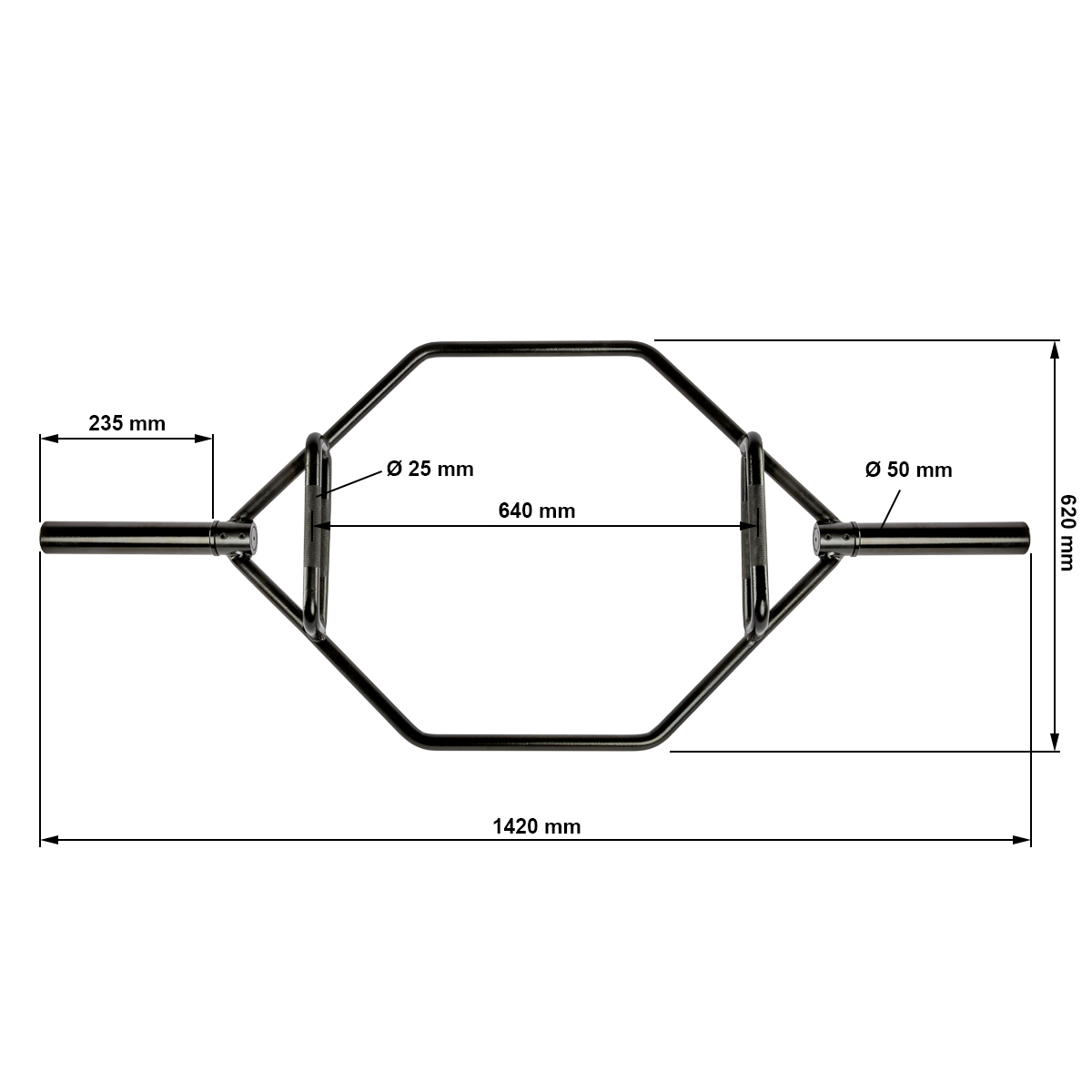 Hex Bar neagra speciala B-Ware este bara profesionala, perfecta pentru antrenamente intense de forta si powerlifting. Construita din materiale rezistente si finisata cu vopsea pulbere de culoare neagra, aceasta bara hexagonala ofera stabilitate excelenta si o prindere sigura in timpul exercitiilor. Cu un design hexagonal, permite distribuirea corecta a greutatii si reduce stresul asupra spatelui, facand-o ideala pentru exercitii precum ridicari de pe sol, indreptari sau trap bar deadlifts.