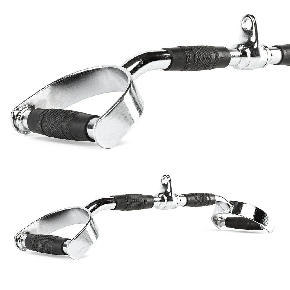 Această bară de tracțiuni pentru spate este proiectată să ofere două variații diferite ale prizei, potrivite pentru antrenamente eficiente și versatile. Mânerele sunt realizate ergonomic, cu material din cauciuc antiderapant, ceea ce asigură o aderență sigură și confortabilă chiar și în timpul exercițiilor intense. Lățimea maximă a prizei este de aproximativ 65 cm, ideală pentru activarea optimă a mușchilor spatelui și pentru tracțiuni adânci.