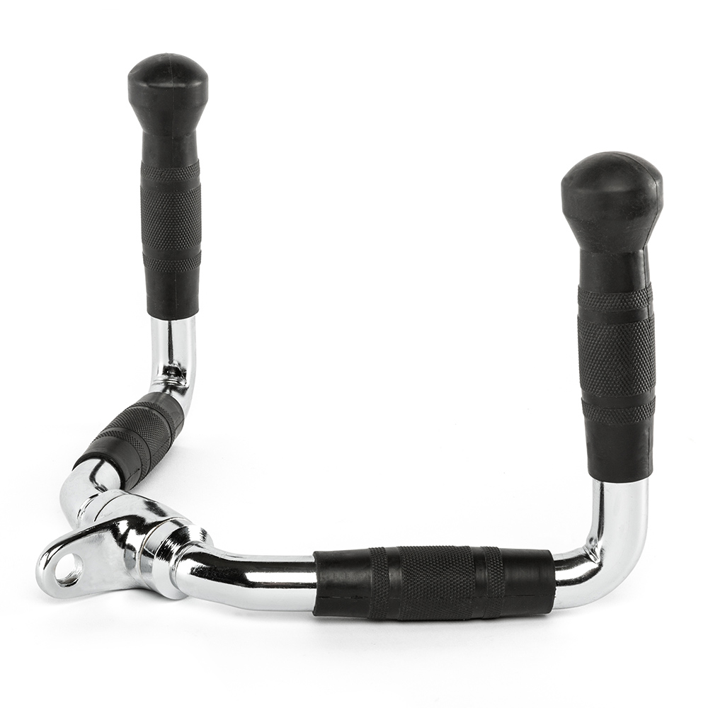 Acest maner ofera o solutie ideala pentru exercitii de vaslit si impins pentru triceps, multumita designului ergonomic si materialelor de inalta calitate. Echipat cu manere din cauciuc ergonomic, acest accesoriu previne alunecarea, asigurand siguranta si confort maxim in timpul antrenamentelor intense. Manerele sunt acoperite cu cauciuc modelat special pentru o priza ferma si naturala, reducand oboseala si riscul de accidentare.