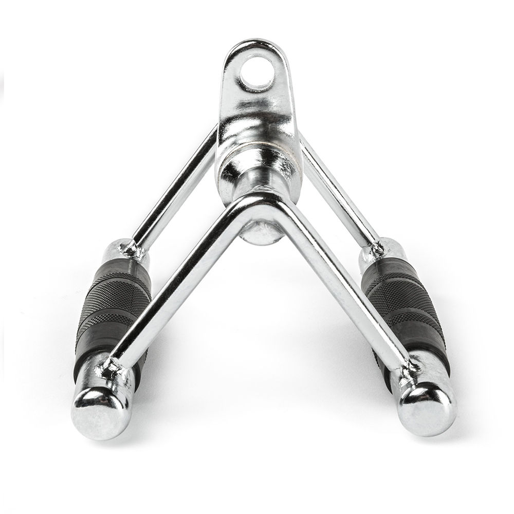 Articulatia rotativa faciliteaza libertatea de miscare si o biomecanica naturala a incheieturii, reducand tensiunea si riscul accidentarilor. Constructia din otel solid ofera rezistenta superioara si o durata de viata indelungata, iar finisajul cromat lucios confera un aspect modern si protejeaza impotriva coroziunii. Distanta dintre manere este de aproximativ 15 cm, ideala pentru un antrenament eficient al spatelui, bratelor si umerilor.