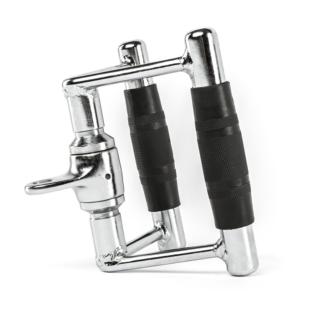 Maner ingust pentru vaslit cu Gummi ergonomic si articulatie rotativa este o solutie ideala pentru antrenamentele la aparatele cu scripete. Designul sau ergonomic asigura o priza confortabila si sigura chiar si in timpul unor antrenamente intense. Manerul este acoperit cu guma speciala anti-alunecare, ce previne alunecarea palmelor si asigura stabilitate maxima in timpul folosirii.