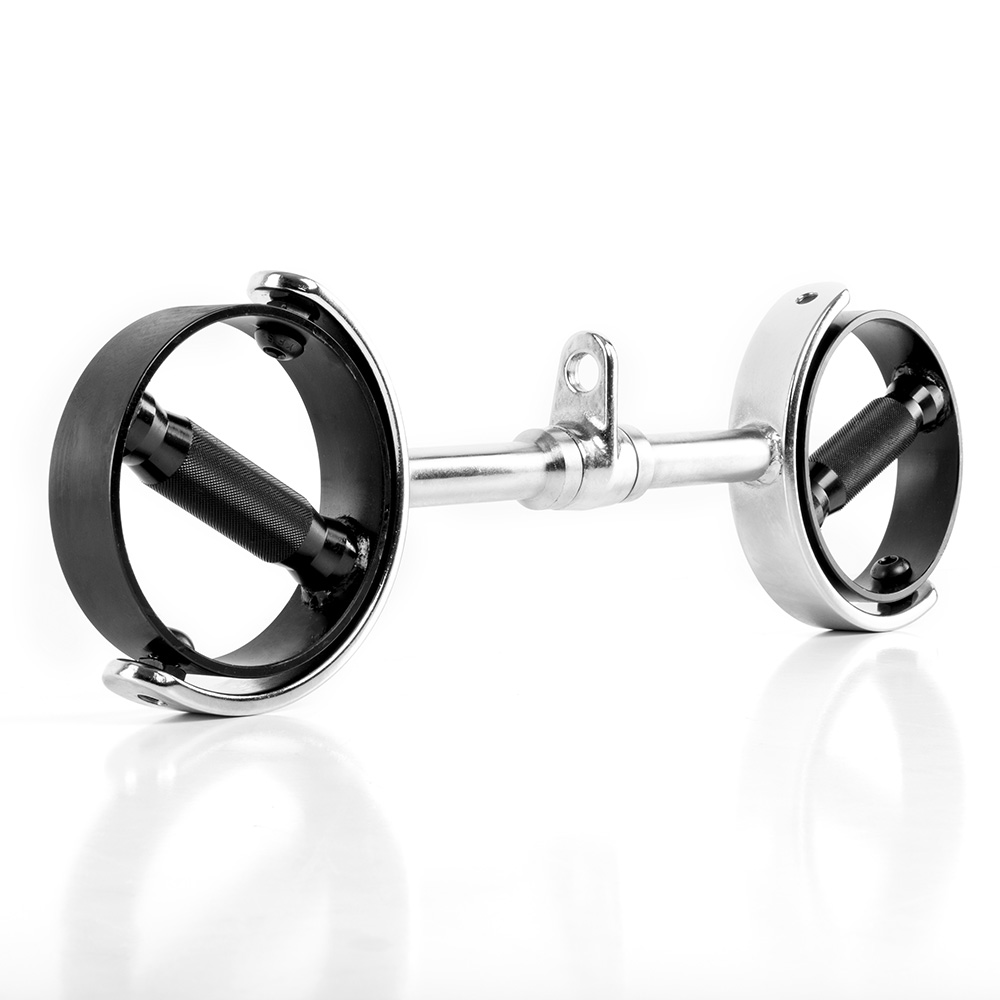 Mânerul de tragere rotativ de 44 cm este conceput special pentru exerciții de forță și fitness. Acest accesoriu robust se potrivește excelent în orice sală de sport sau spațiu de antrenament acasă, oferind o prindere sigură datorită construcției sale din oțel masiv cu finisaj cromat și oxidare neagră pentru o durabilitate sporită.