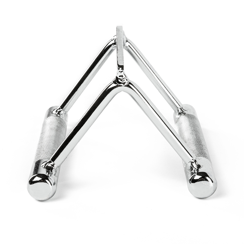 Paralelgriff cromat pentru tragere la cablu este un accesoriu esențial pentru antrenamentele de forță, proiectat pentru utilizare în sălile de fitness și acasă. Fabricat integral din oțel de înaltă calitate, acest accesoriu oferă rezistență maximă și durabilitate pe termen lung. Finisajul său cromat înalt strălucitor nu numai că adaugă un aspect modern și profesionist spațiului de antrenament, dar și protejează împotriva coroziunii și uzurii.
