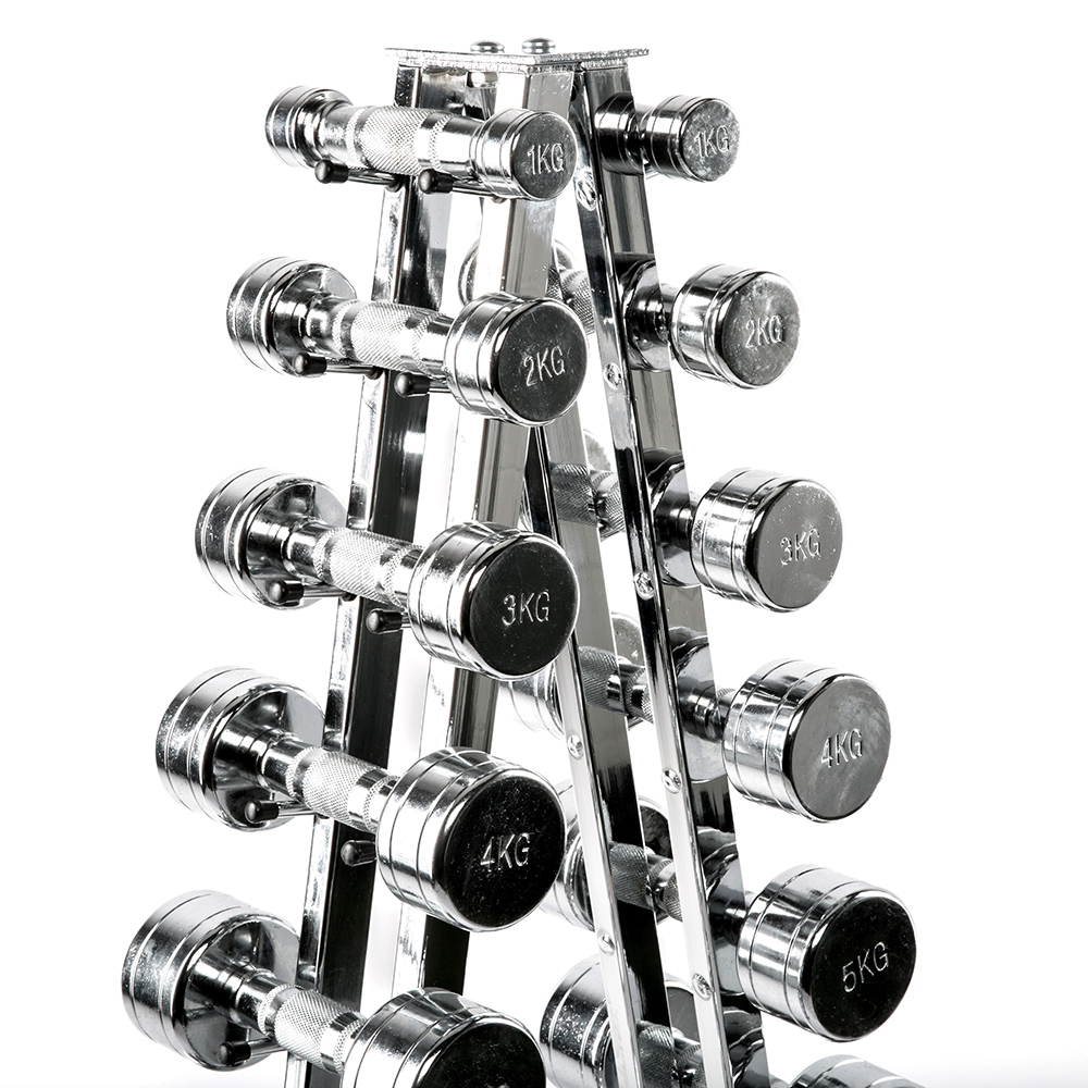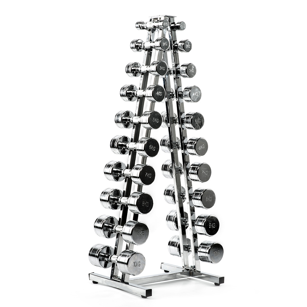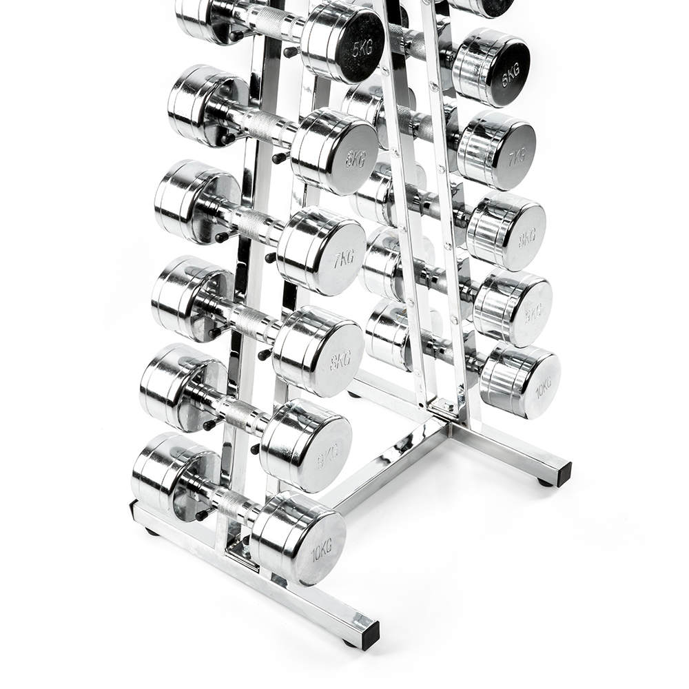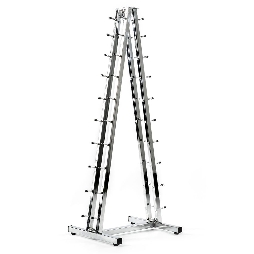 Piramidă suport gantere cromate compactă de calitate profesională pentru sală