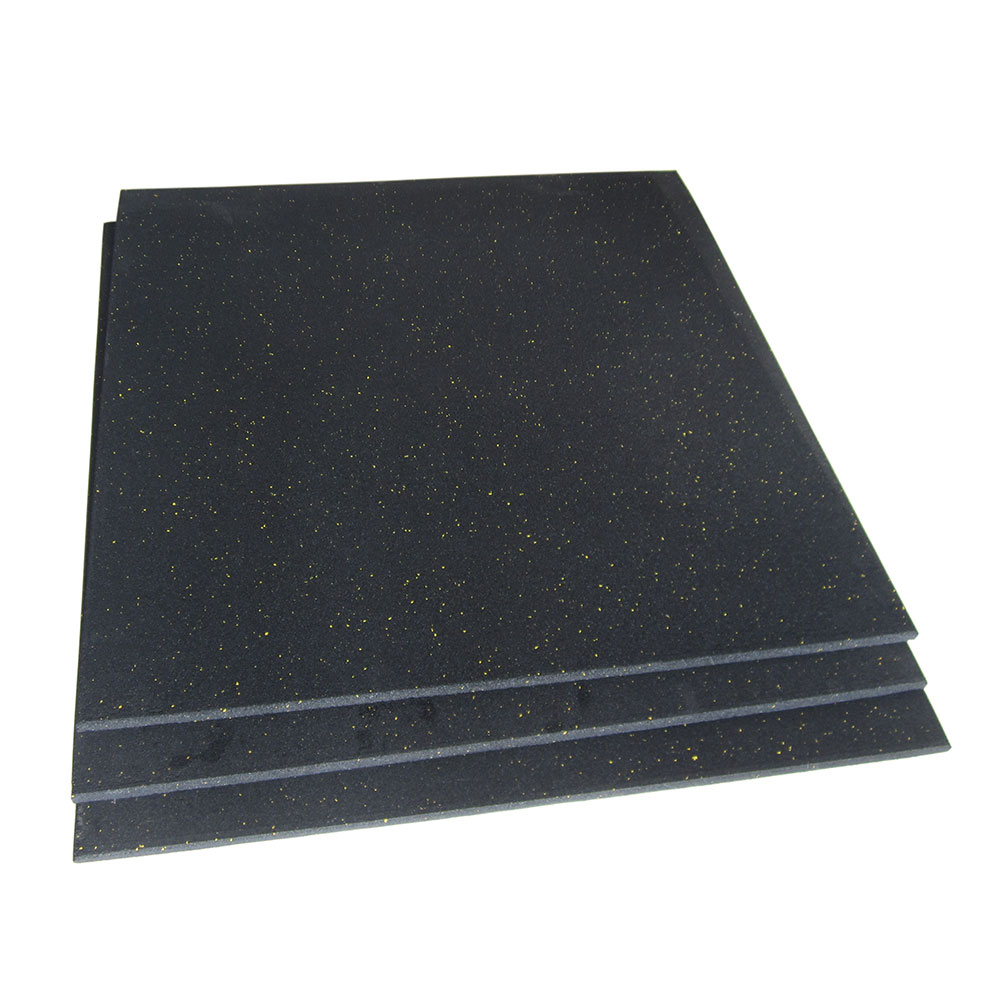 Placă din cauciuc 1000 × 1000 × 15 mm, TheWay Fitness – margini drepte, culoare neagră