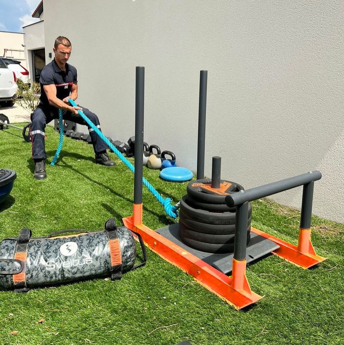 Sania de antrenament este proiectata pentru a fi folosita pe orice suprafata: iarba, zapada, nisip, etc.