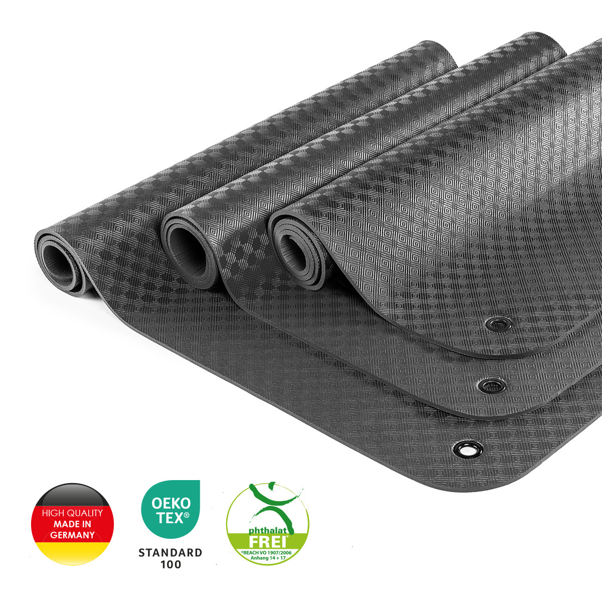 Saltelele sunt fabricate din spumă moale, testată pentru substanțe nocive, stabilă ca formă și cu proprietăți excelente de izolare termică. Suprafața este prevăzută cu o textură antiderapantă, perfectă atât pentru interior, cât și pentru exterior. Produsul este ușor de curățat, rezistent la apă, transpirație și agenți de curățare, iar datorită calității sale superioare oferă o capacitate excelentă de amortizare și revenire la forma inițială. Este ideal pentru utilizare profesională, dovedind o durabilitate impresionantă chiar și în condiții de utilizare intensă. Fabricat în Germania, acest set de saltele pentru gimnastică respectă cele mai stricte standarde de siguranță și calitate.
