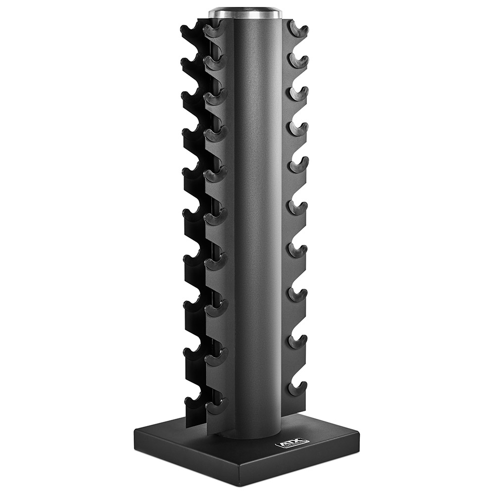 Suportul ATX® este proiectat pentru depozitarea a 10 perechi de gantere între 1 și 10 kg, având polițe acoperite cu material plastic pentru protecție suplimentară. Construcția este compactă și solidă, cu un design exclusiv, acoperire cromată elegantă și elemente decorative din oțel inoxidabil periat. Stabilitatea este asigurată de baza mare și grea, fiind dotat cu patru picioare din cauciuc, anti-alunecare și reglabile pe înălțime. Suportul are o placă cu logo ATX®, o înălțime de 132 cm, o bază de 49x49 cm, și o capacitate de încărcare maximă de 150 kg.