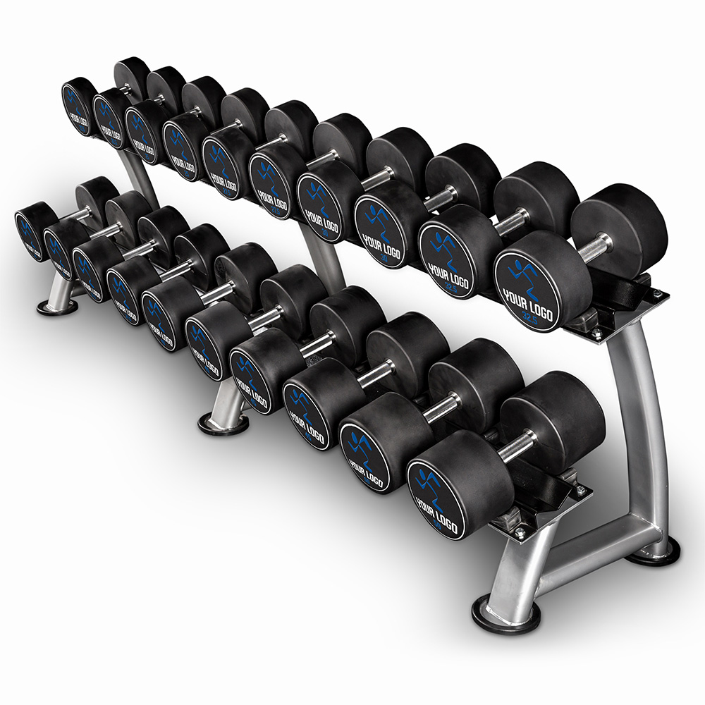 Setul de gantere compacte din poliuretan personalizabile cu logo-ul clientului, în trepte de 2,5 kg, este alegerea perfectă pentru săli de fitness profesionale sau pentru utilizatorii care doresc un echipament durabil și versatil. Aceste gantere robuste acoperă un interval de greutate larg, de la 5 kg la 30 kg, permițând efectuarea diverselor exerciții de forță, izolare sau antrenamente funcționale.