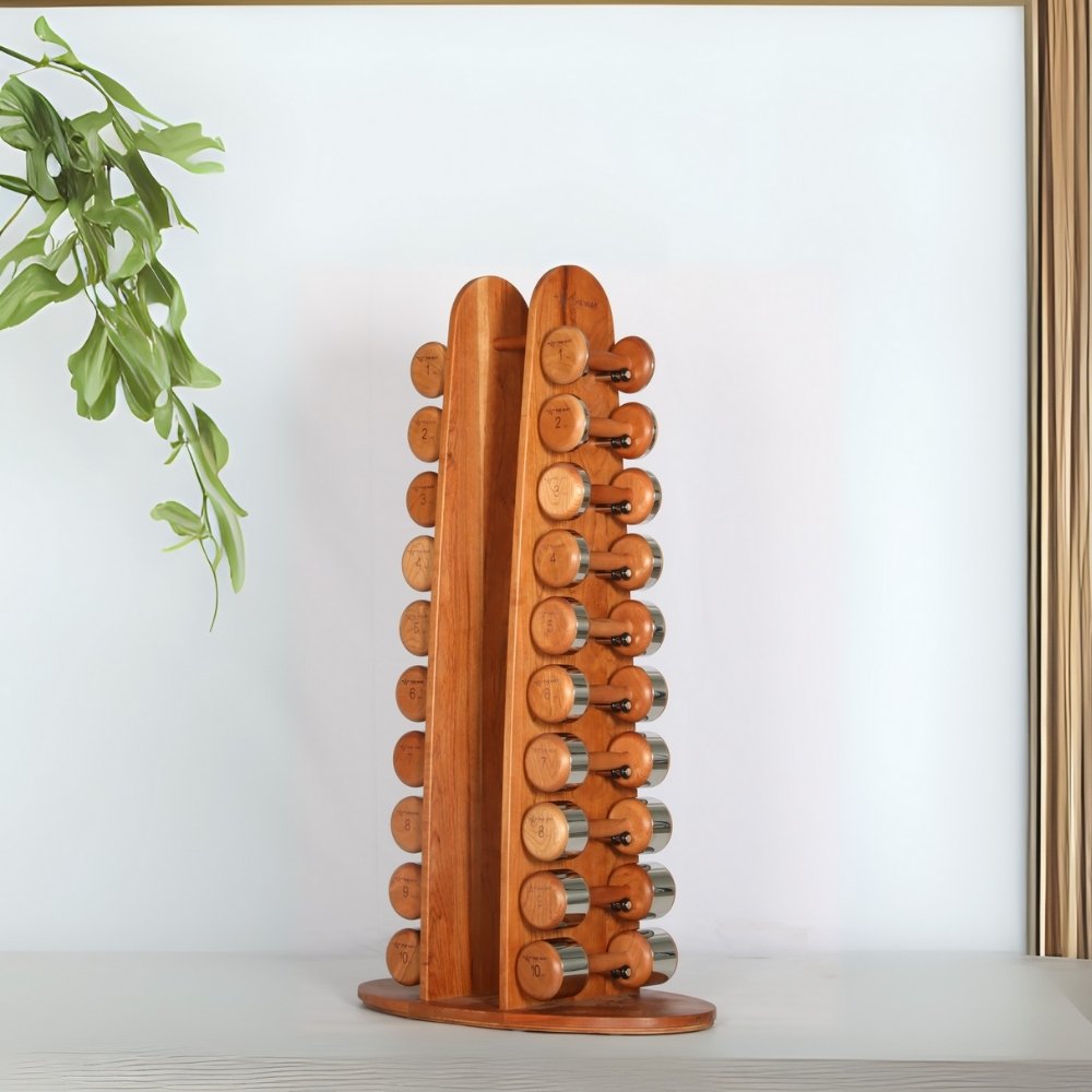 Realizate din lemn exotic cu finisaj “Red Cherry”, aceste gantere emană eleganță și rafinament, adăugând o notă distinsă oricărui spațiu de antrenament. Aspectul lor natural și vibrant oferă un plus de calitate vizuală, potrivit perfect pentru spații moderne sau minimaliste.