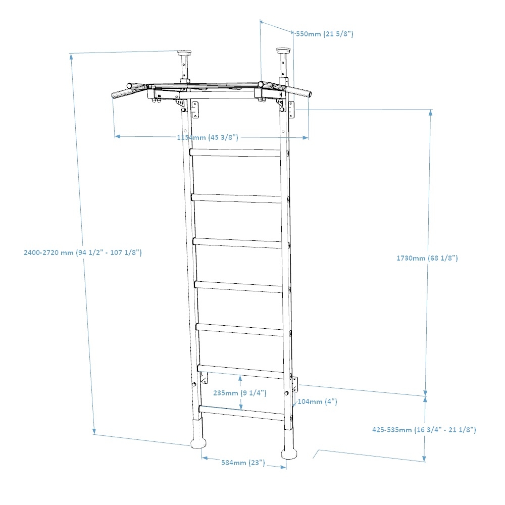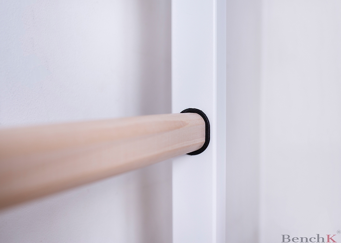 Spalier BenchK care permite montarea de la podea până la tavan sau instalarea standard pe perete cu o bară de tracțiune fixă din oțel cu 6 mânere.