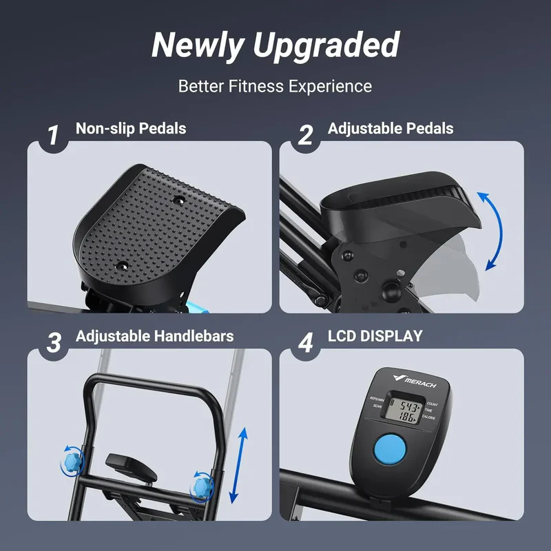 Cu un cadru robust care suportă până la 110 kg, acest aparat cardio construit pentru a rezista. Pedalele anti-alunecare și ghidonul asigură un antrenament sigur și stabil, chiar și în timpul sesiunilor intense.