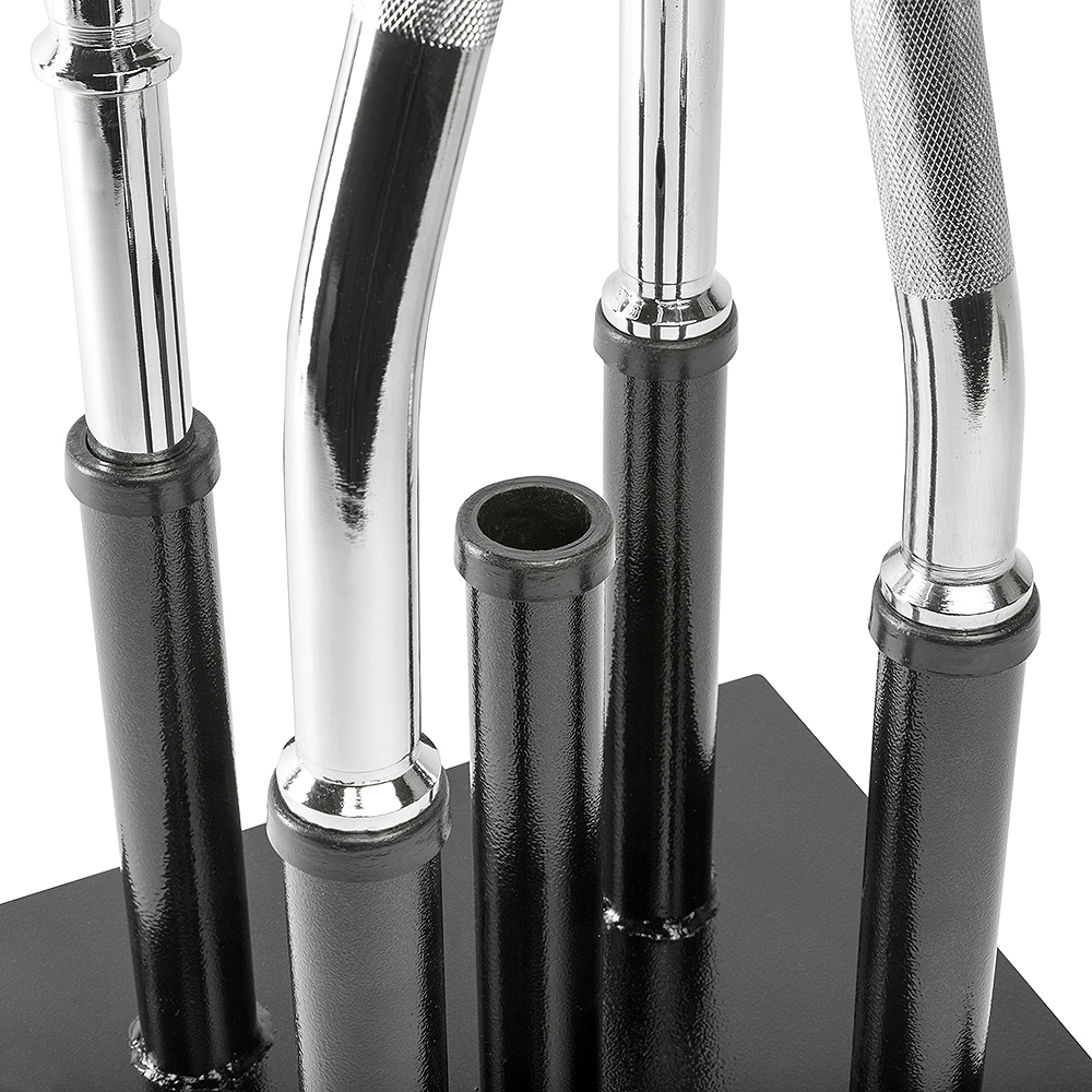 Acest suport robust este ideal pentru depozitarea a 5 bare cu un diametru de 30 mm. Construcția durabilă asigură stabilitate și siguranță, fiind perfect pentru orice sală de sport sau spațiu de antrenament acasă. Cu o bază fermă, previne răsturnarea sau deplasarea, astfel încât barele tale sunt mereu bine organizate și la îndemână.