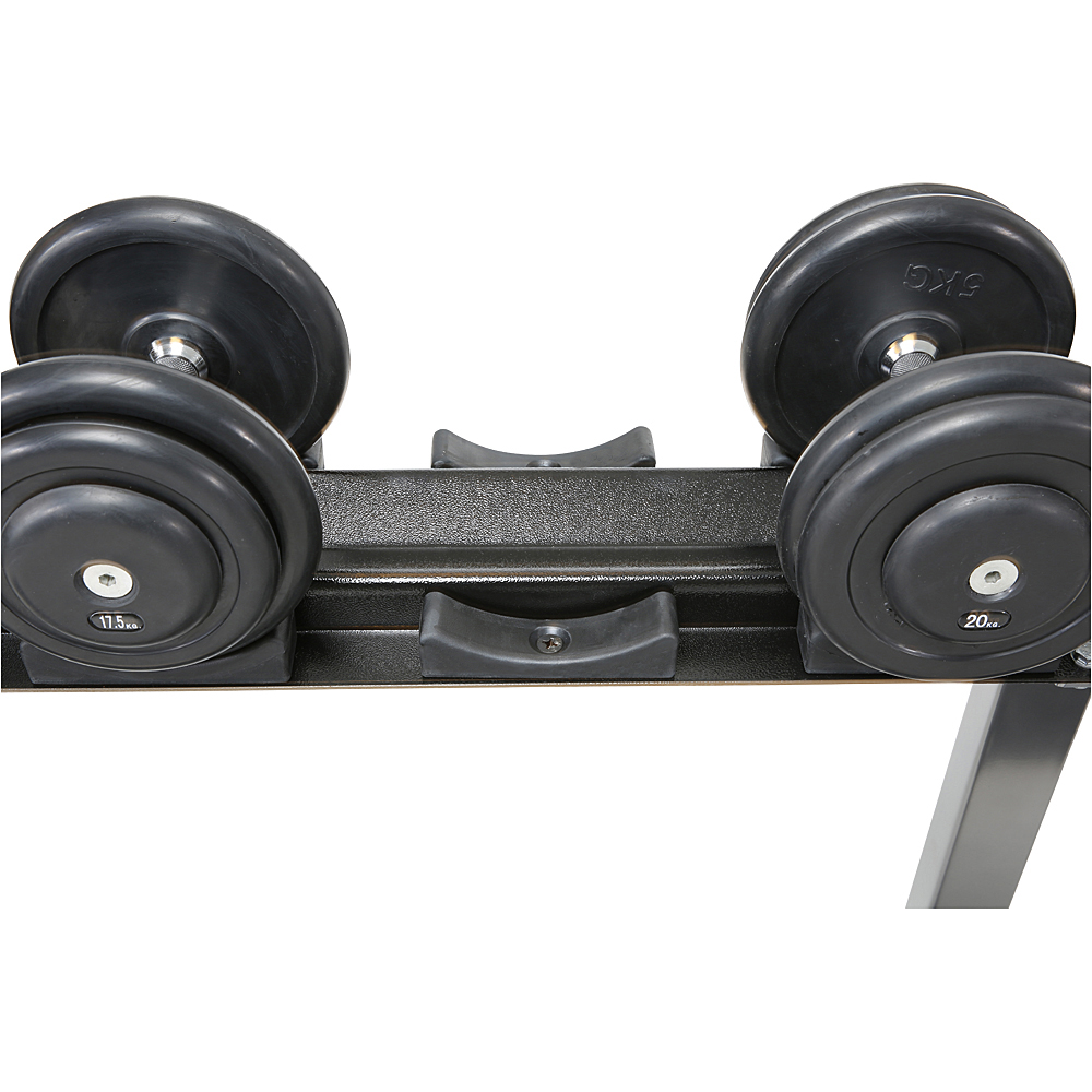 Cu o structură robustă și o capacitate de rezistență de până la 100 kg, tava de depozitare permite aranjarea ordonată a ganterelor, optimizând spațiul disponibil. Având o construcție compactă, cu o lățime de 160 mm și o adâncime de 42 mm, aceasta se integrează ușor în diverse setări de antrenament, fie că este vorba de un centru sportiv profesional sau un spațiu personal. Designul său practic și culoarea neagră conferă un aspect modern și versatil, potrivindu-se cu diverse echipamente de fitness.